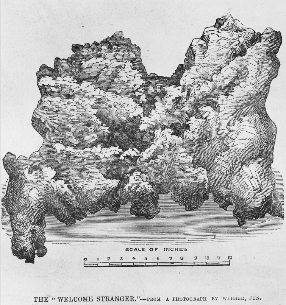 Above:- A sketch of the Welcome Stranger. Image c/o State Library Victoria.