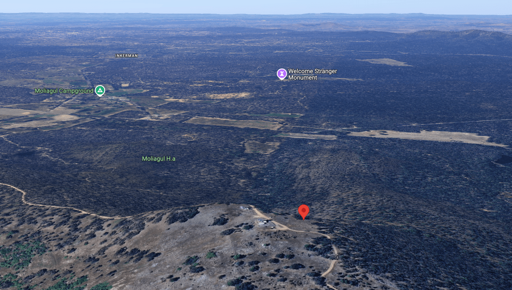 Above:- Map showing the location of Mount Moliagul. Map c/o Google Maps.