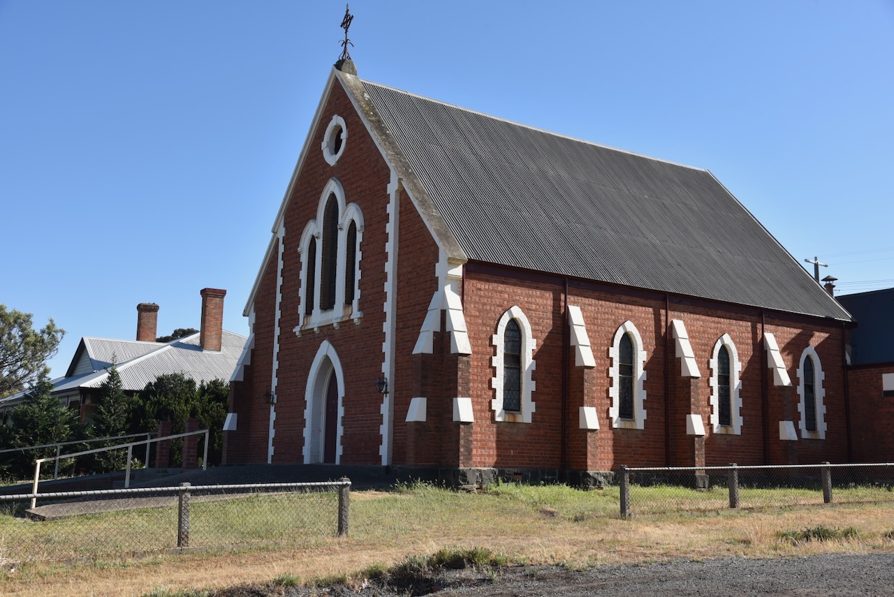 The Moliagul Anglican church was built between 1864 to 1865. (Aussie Towns 2024)