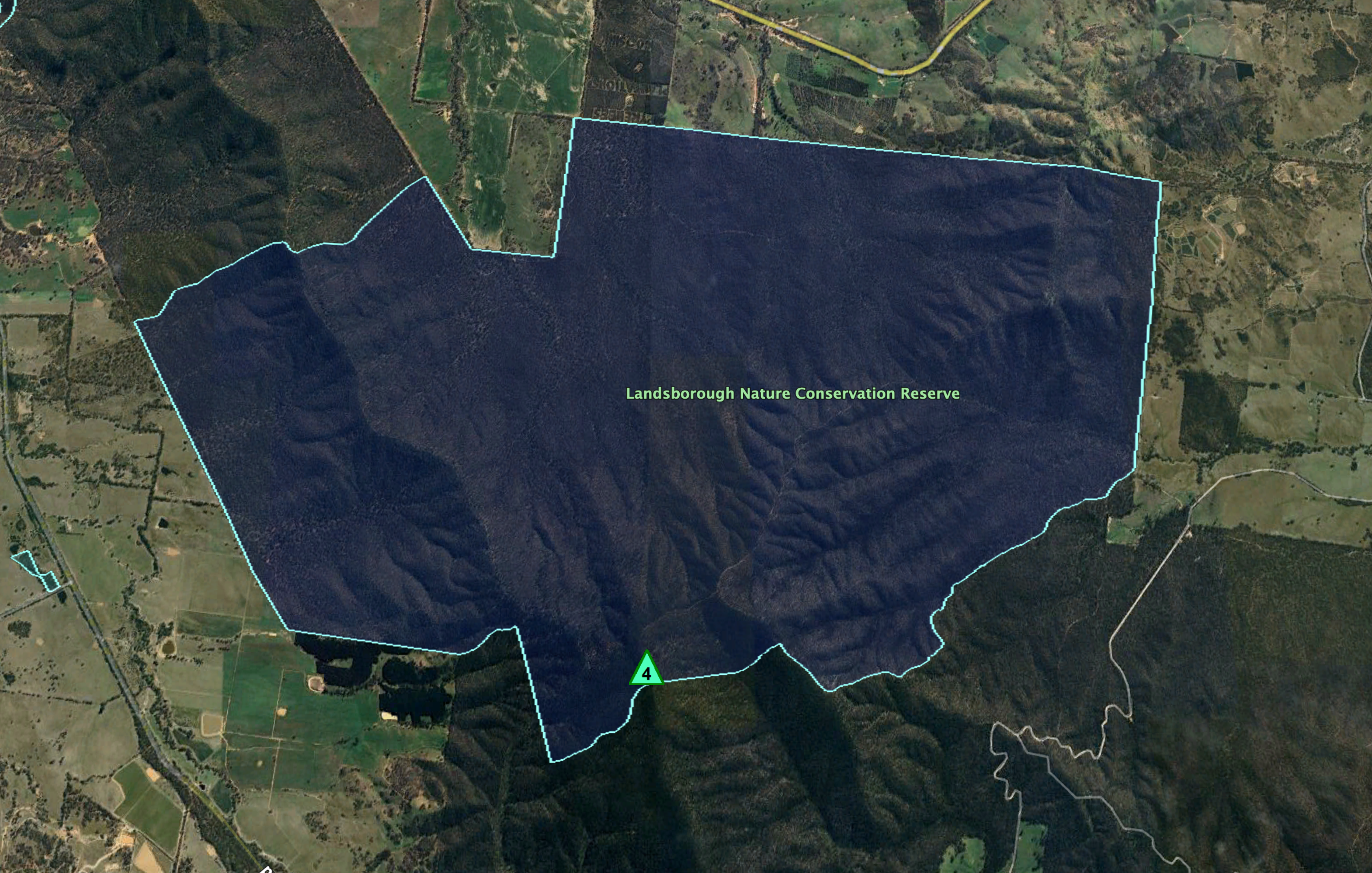 Above:- An aerial view of Mount Moliagul looking south. Image c/o Google Maps.