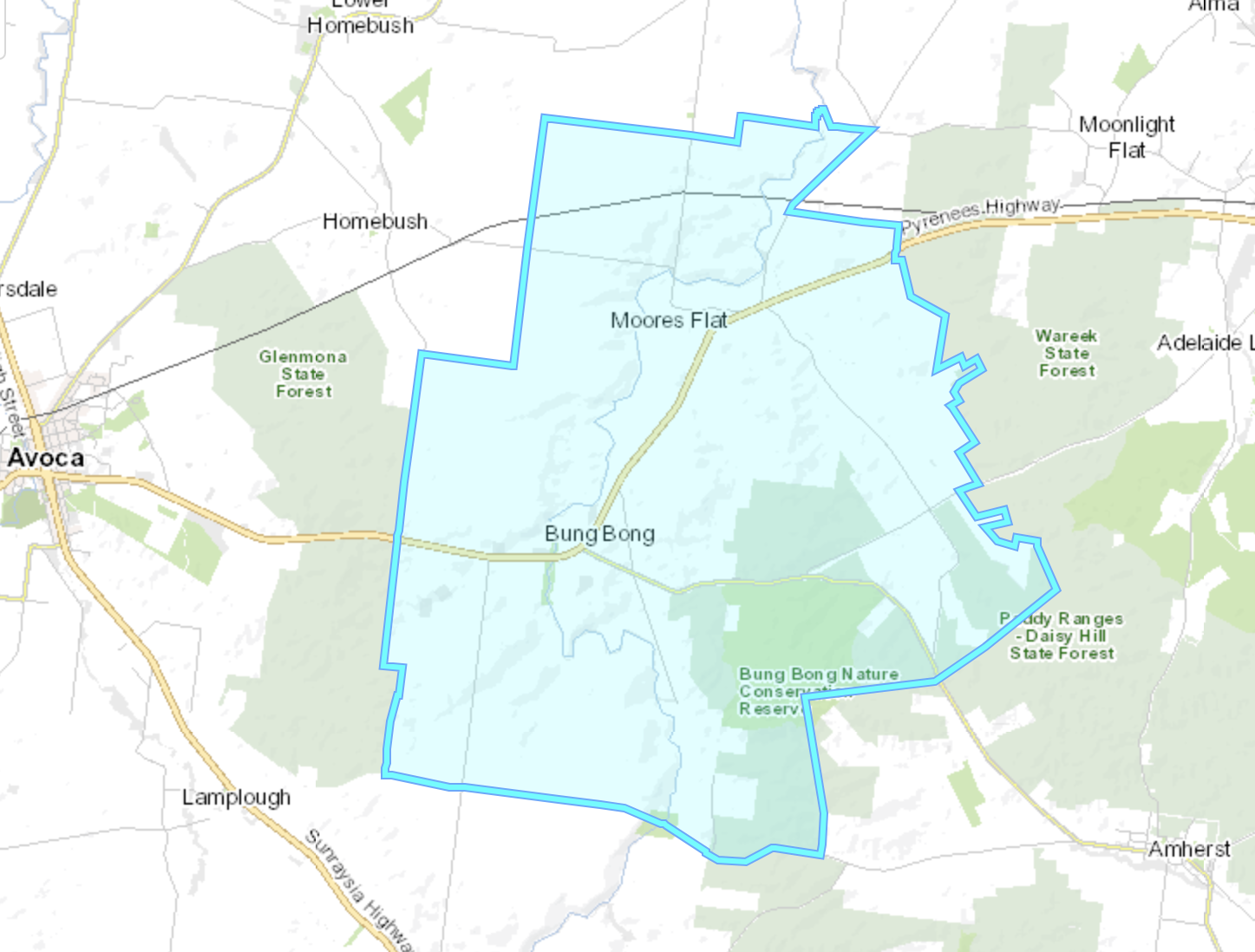The first survey of the Moliagul township was conducted in 1859 by Henry Morris. The surveyed government site was on a hill to the east of the present main street. Settlers who had built premises on the flat near the creek, refused to purchase the sites on the hill when they came up for sale. In 1862 Dunolly Surveor Phillip Chauncey offered both sites for sale. The first sale of land at Moliagul took place on the 5th day of September 1862. In 1869 a school was opened and in 1863 this was moved to a Primitive Methodist chapel. It was rebuilt on a further site in 1872. The school’s head teacher was Thomas Flynn, the father of John Flynn, the founder of the Australian Inland Mission and Royal Flying Doctor Service. (Bannear 1980) (Victorian Places 2024)
