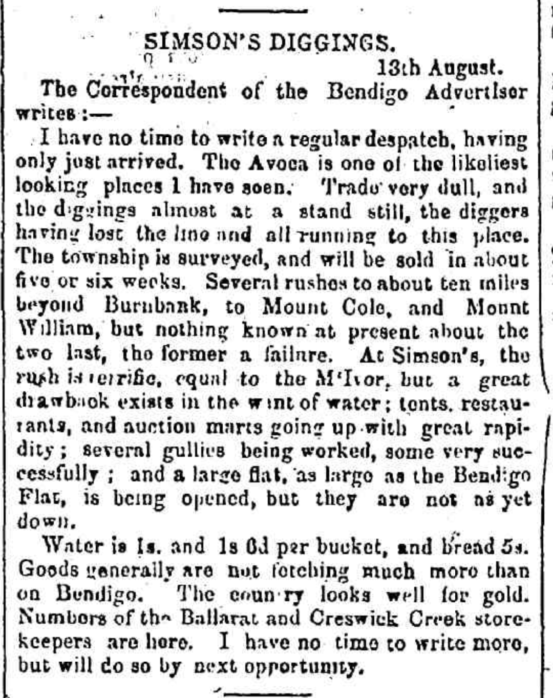 It is believed that John and Richard had known each other from boyhood in Cornwall and had been choirboys together in Cornwall. They spent some time in Bendigo seeking gold but were unproductive and moved to Moliagul. (Rootsweb 2021)
