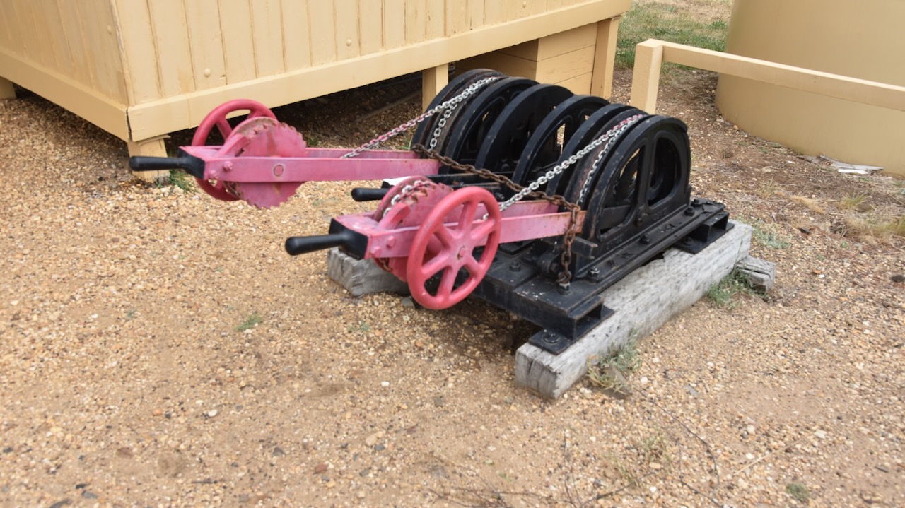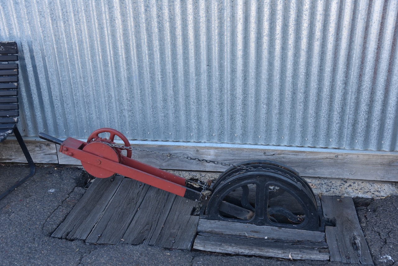 After leaving the park we visited the Mopoke Water Wheel on Blanket Gully Road, Campbells Creek. The water wheel was constructed in 1887, the same year that the Garfield Water Wheel at Chewton was built. The Mopoke Water Wheel was used to drive the ten-head stamp battery of the Bendigo and Fryers Goldmining Company. The wheel had a diameter of 60 feet and the gear had a diameter of 40 feet. It was in operation until c. 1900. (Gold Fields Guide 2024)
