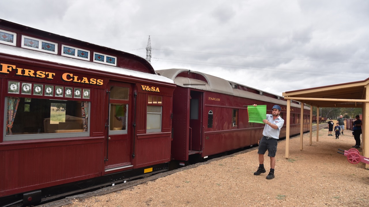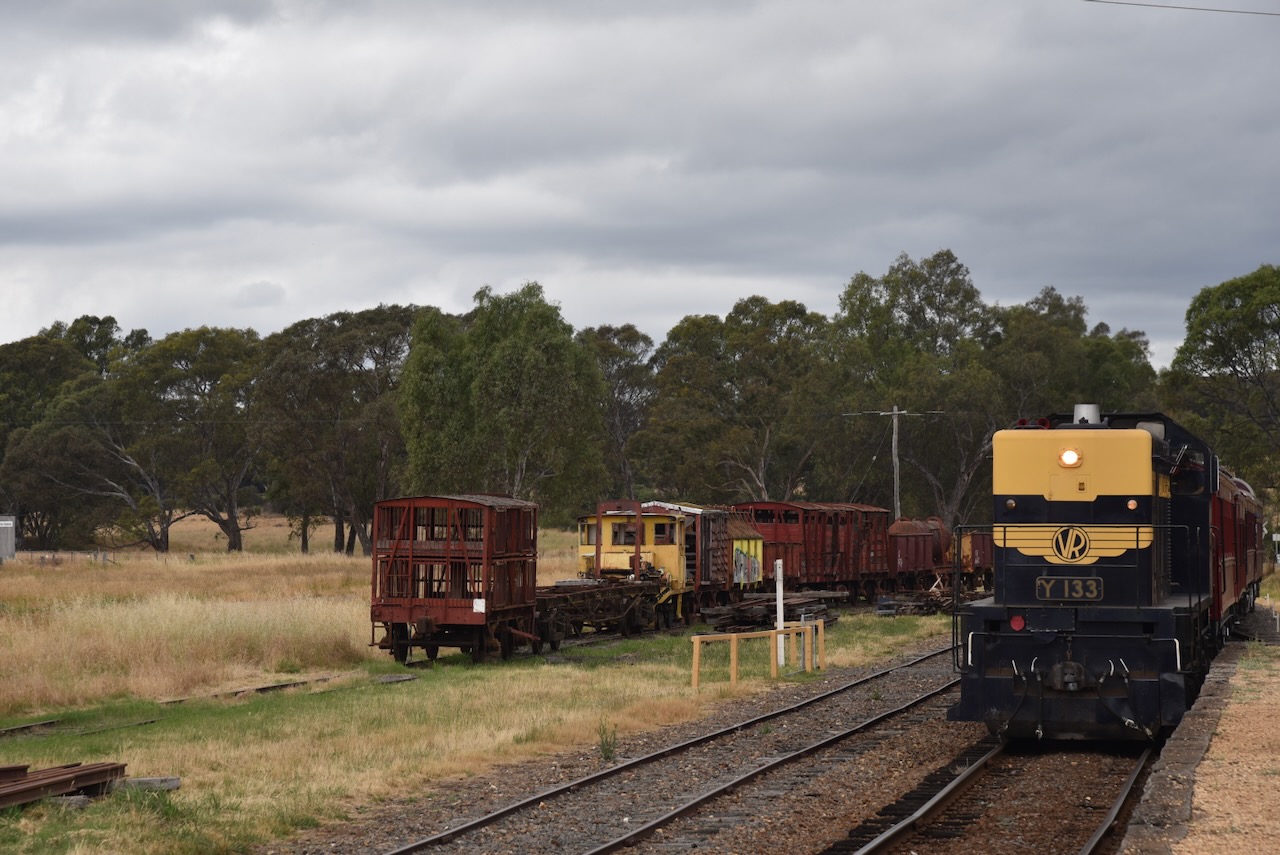 On our way to our next park activation, we noticed quite a crowd of people gathered alongside of the railway line at the Muckleford Railway Station. We decided to have a look. After speaking with some of those in attendance, we discovered that the Victorian Goldfields Railway tourist train was about to come through.