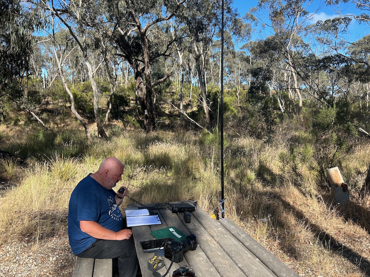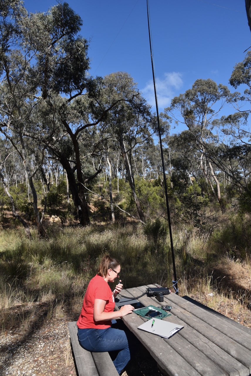 We set up on a walking trail off a 4WD track in the reserve. We ran the Yaesu FT857, 40 watts and the 20/40/80m linked dipole. I used the special call of VI10VKFF.