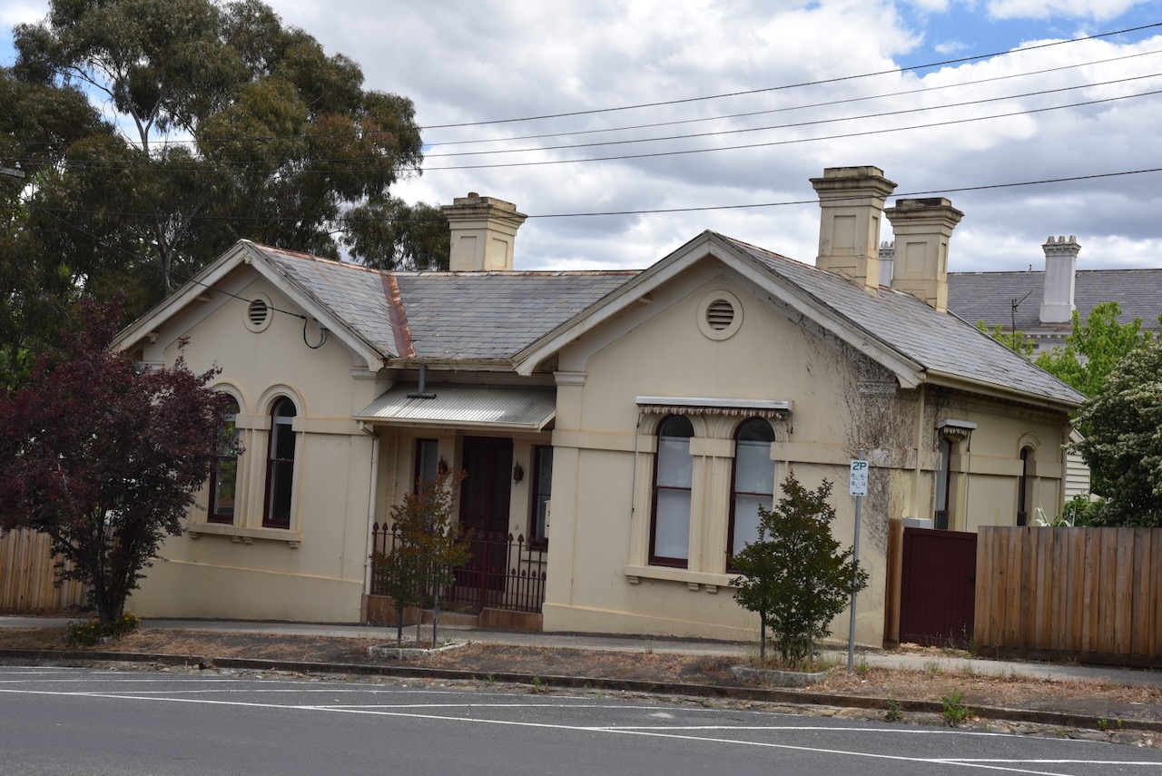 The first Maldon courthouse was a timber building, built in 1857. By 1860 plans had been drawn up for a new brick courthouse by architect Kawerau from the Public Works office. John Robertson was the successful tender in December 1860 for £2016. Reportedly there were issues with the building of the courthouse and construction halted in February 1861. Work recommenced in Aril 1861 with Maldon bricks being used in place of Castlemaine bricks. By mid-1861 the building was opened. It was closed in 1968-1969. (Heritage Council 2024)