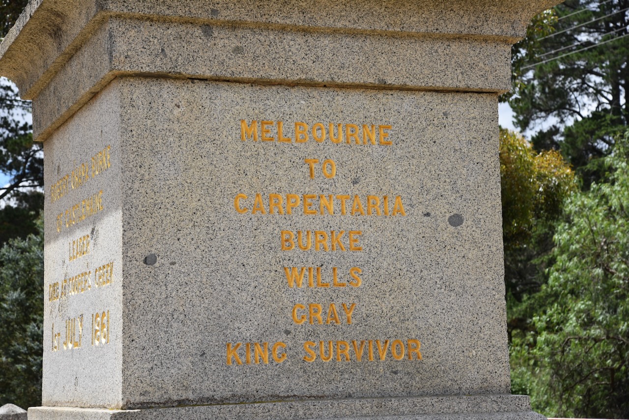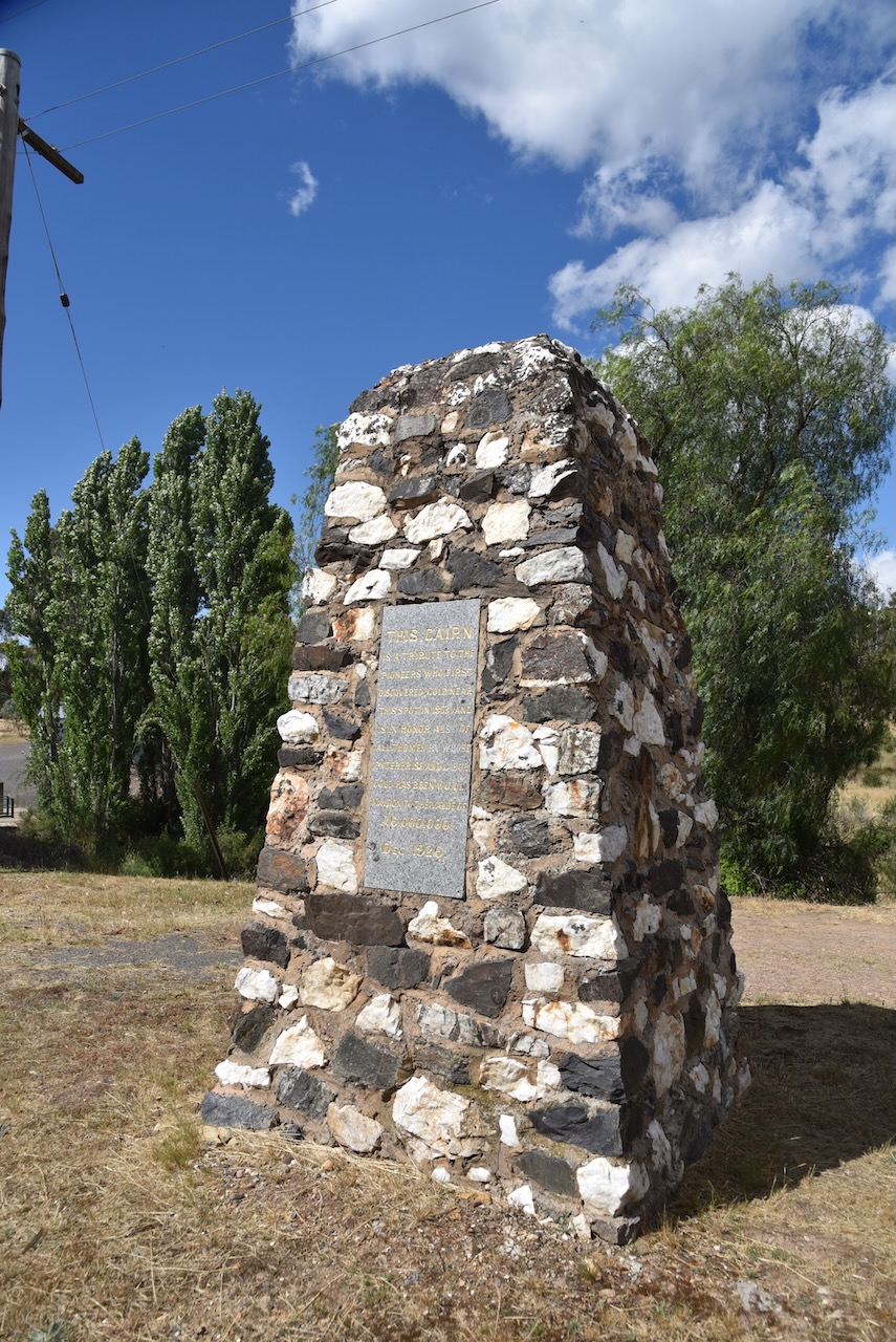 “This cairn is a tribute to the pioneers who first discovered gold near this spot in 1853, and is in honor also of all the men by whose enterprise and labor gold has been on in Maldon to the vavlue of £6,000,000. Dec. 1926.”