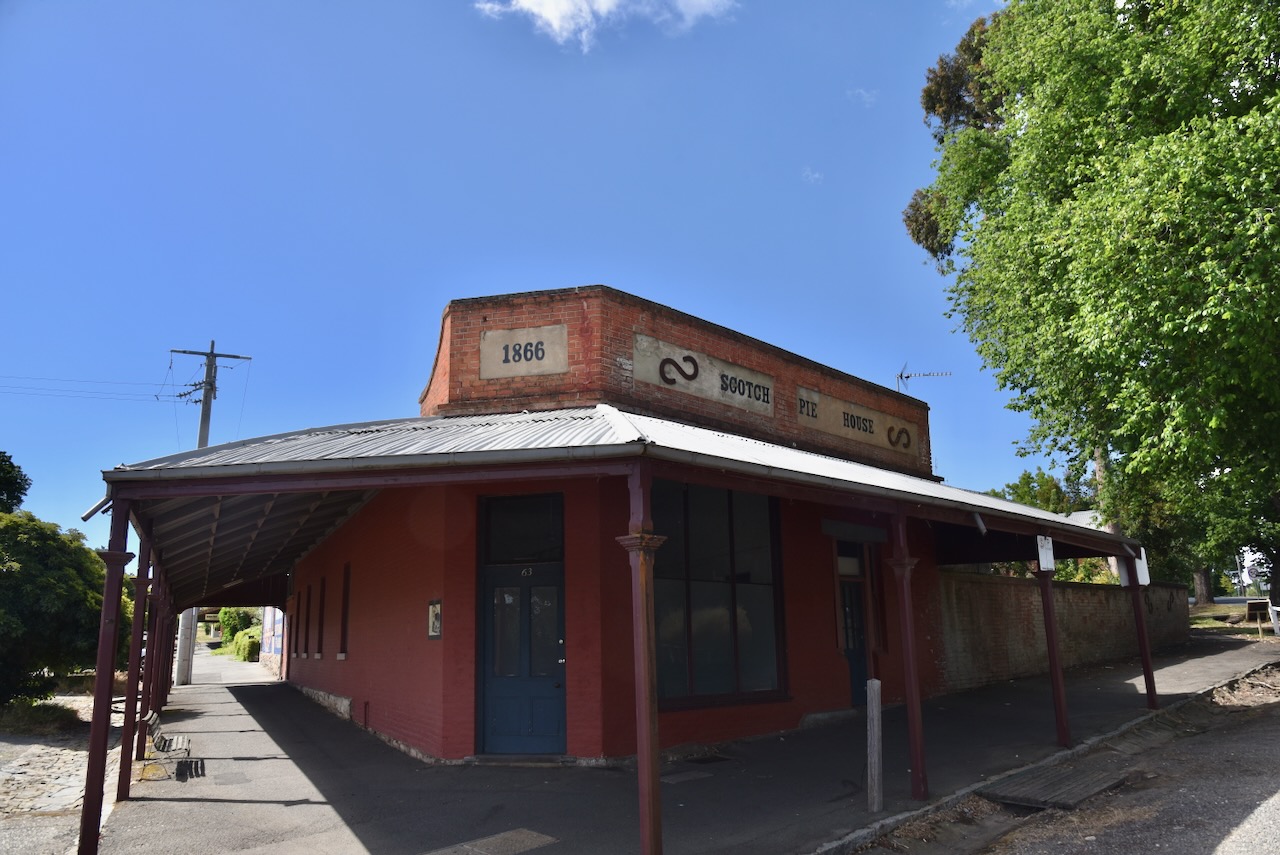 Scotch Pie House Scotch Pie House was built in 1866 following a fire that destroyed a previous store operated by Warnock Bros. (Maldon Museum 2024)