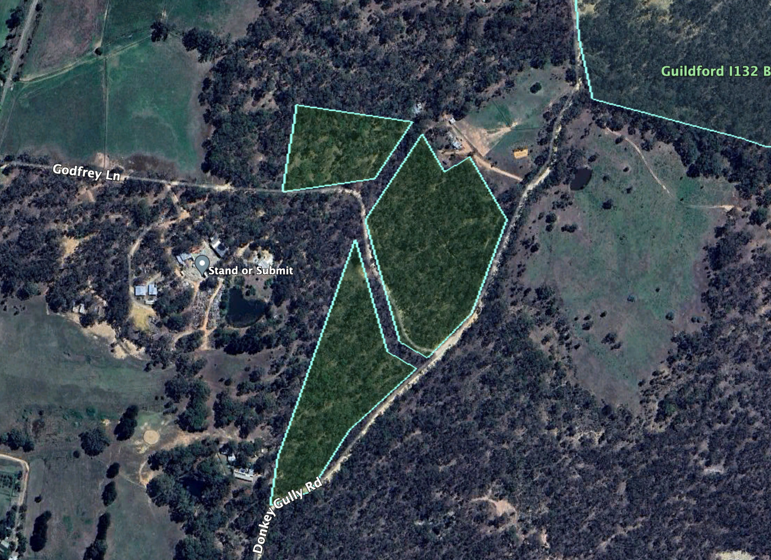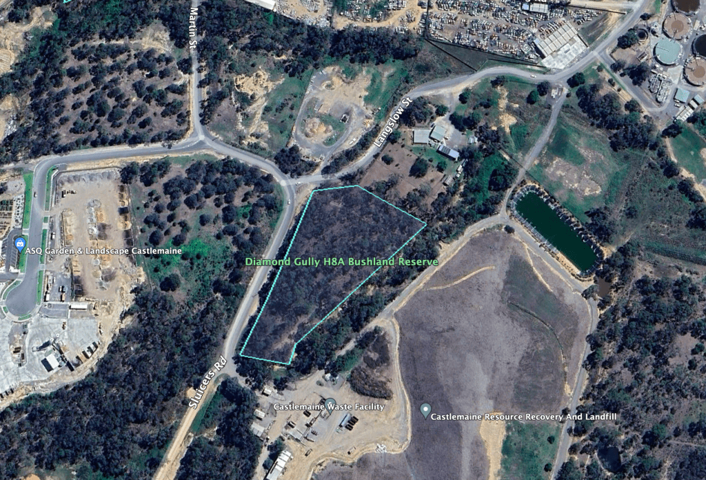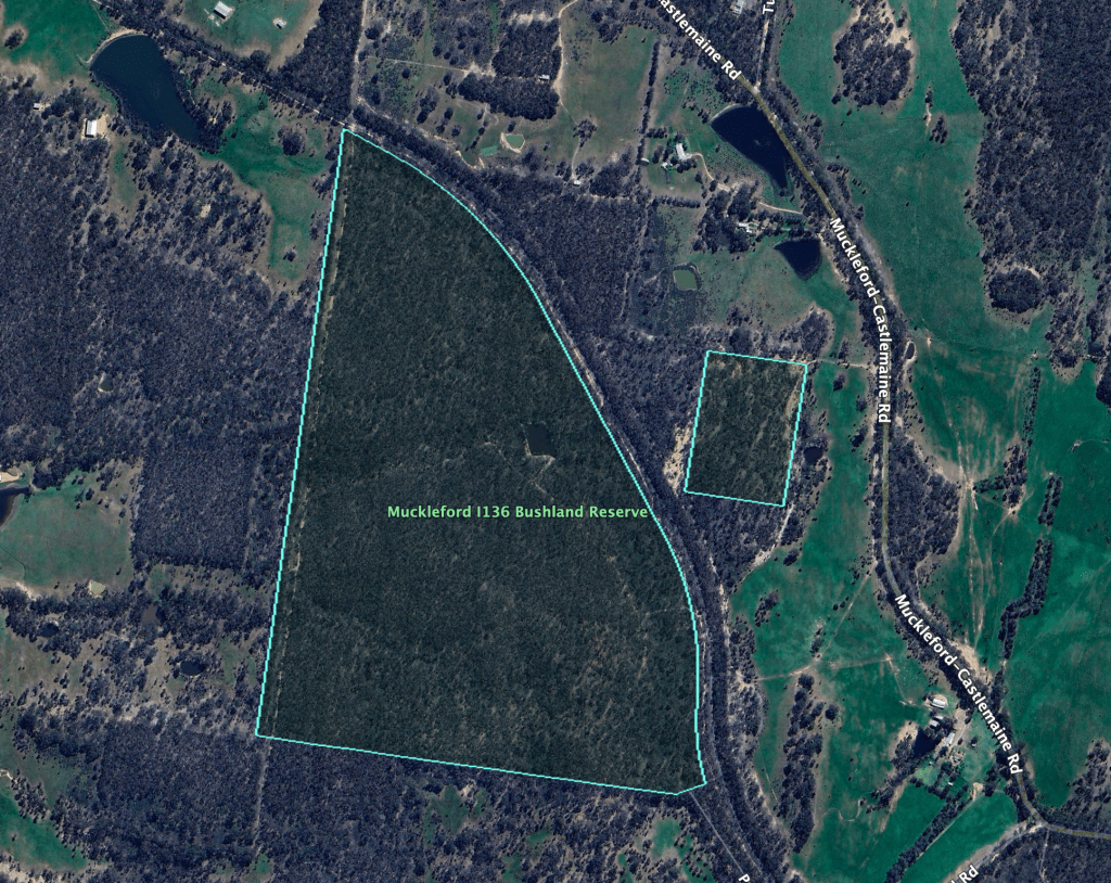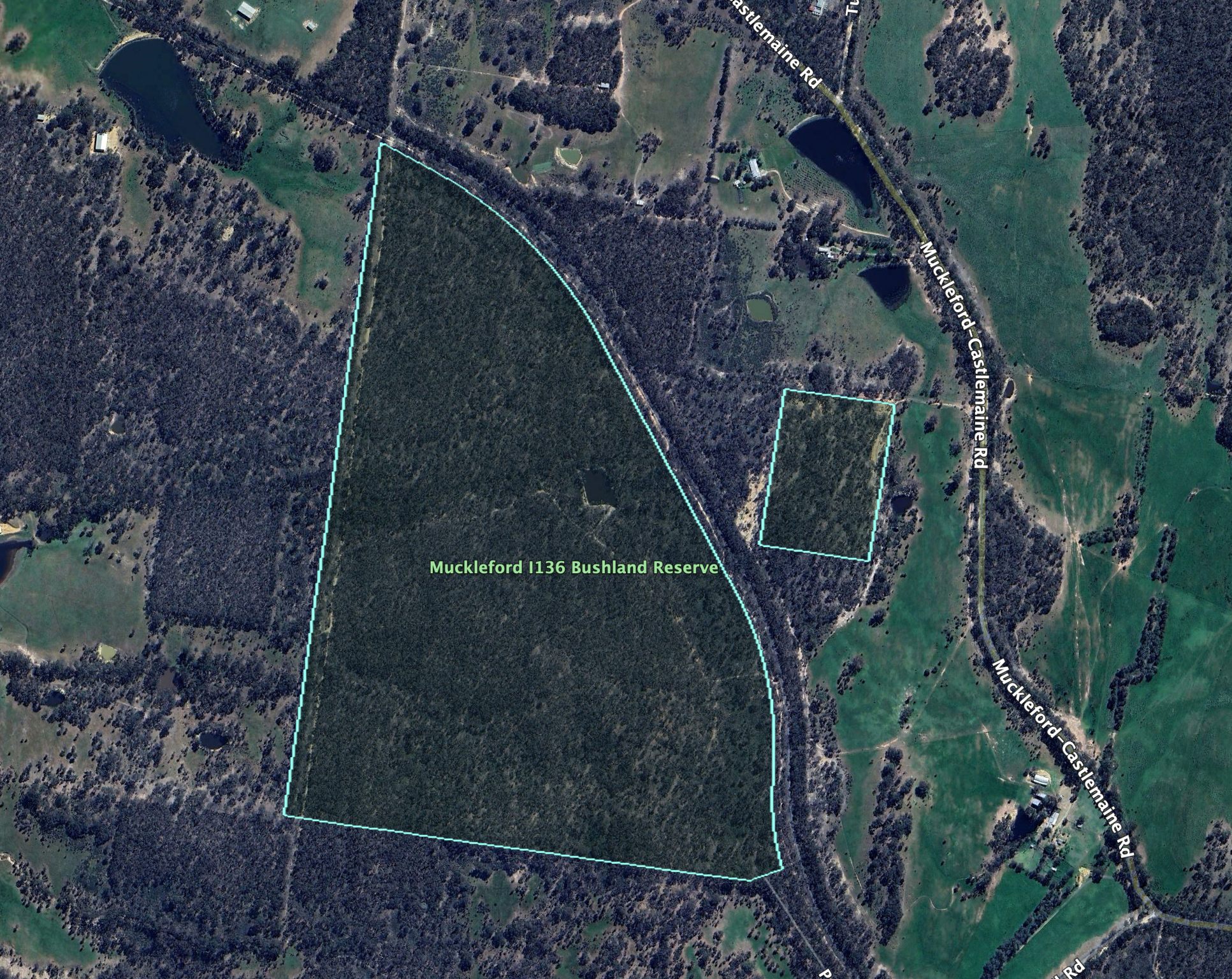 Above:- An aerial view of the Muckleford I136 Bushland Reserve. Image c/o Google Earth.