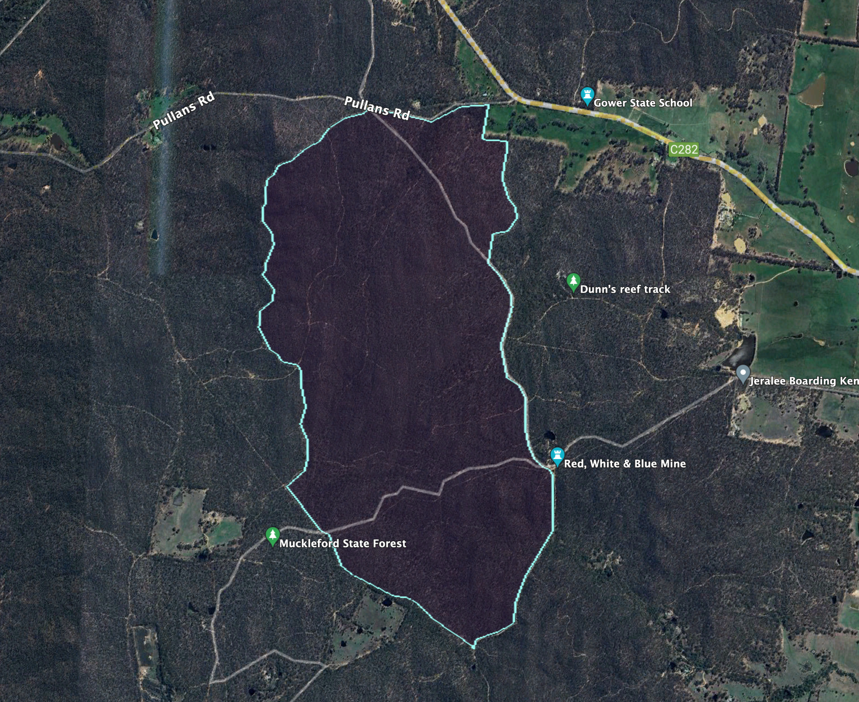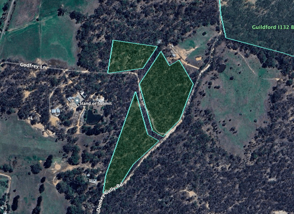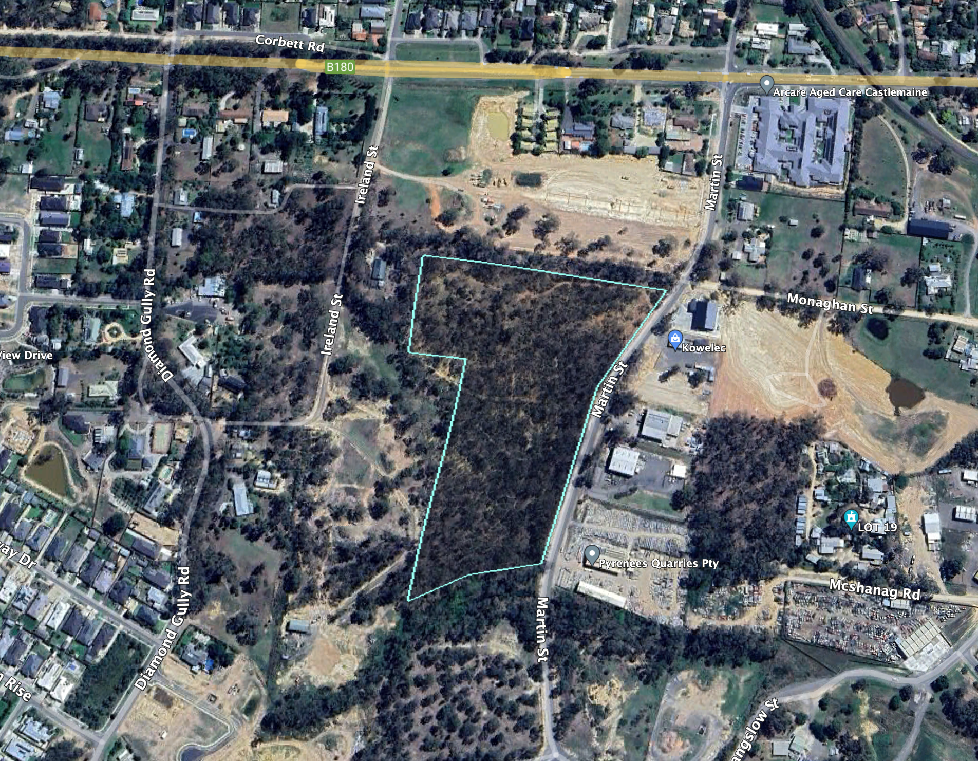 Above:- An aerial view of the Muckleford I136 Bushland Reserve. Image c/o Google Earth.