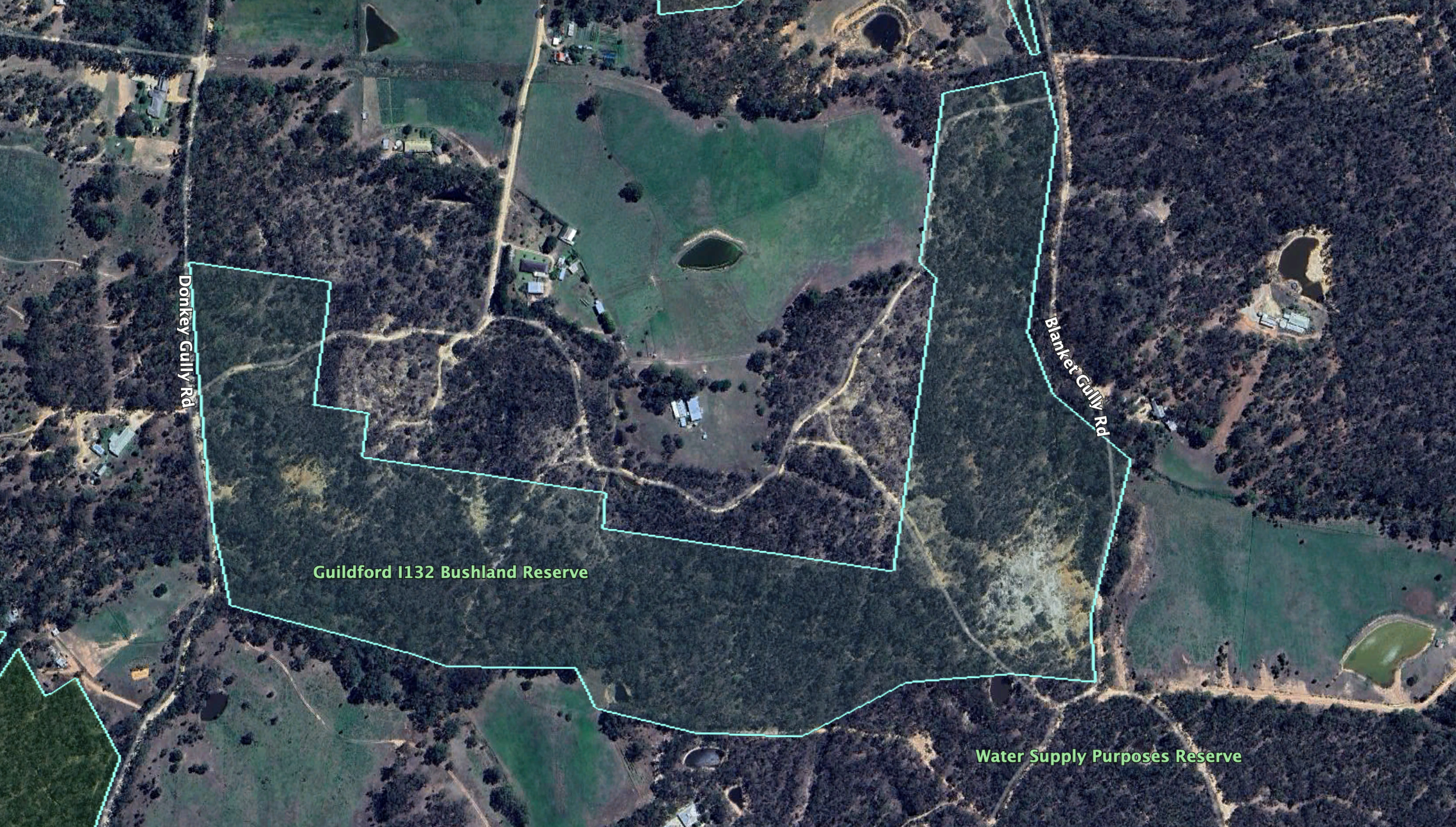 Above:- An aerial view of the Guildford I132 Bushland Reserve. Image c/o Google Earth.