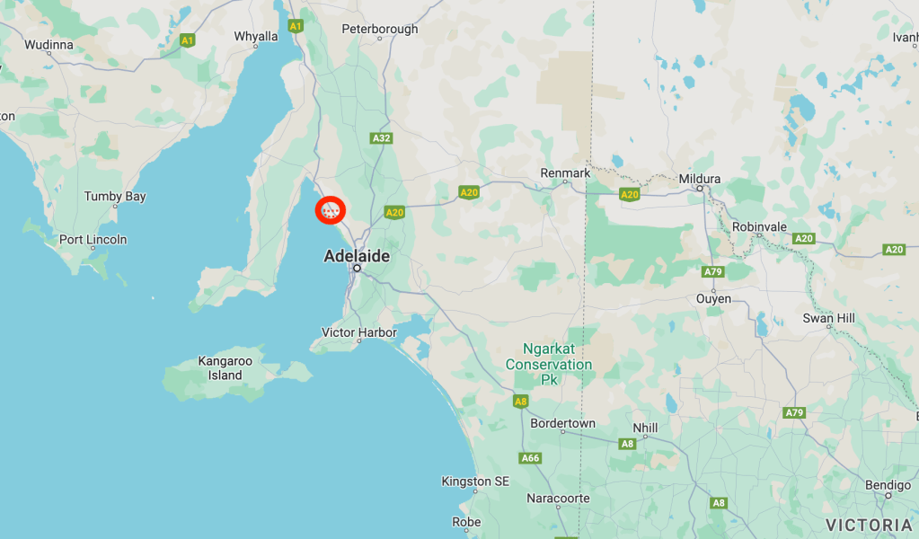 Above:- Map showing the location of Dublin, South Australia. Map c/o Google Maps.