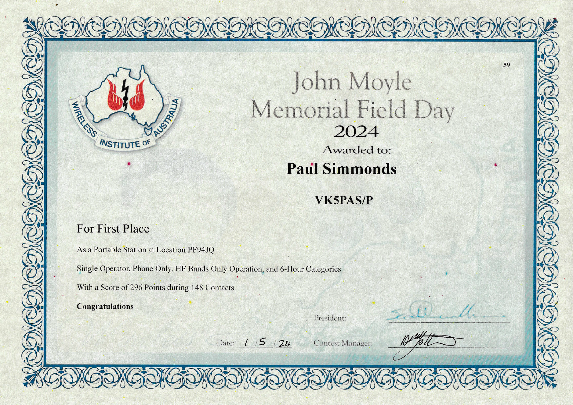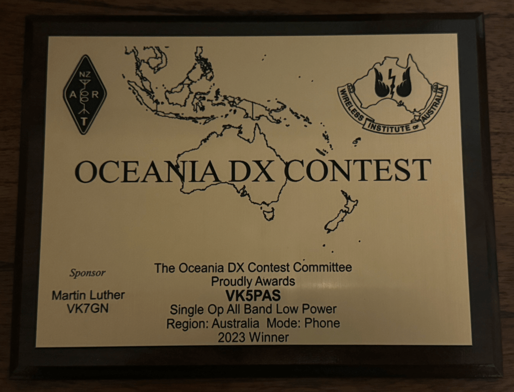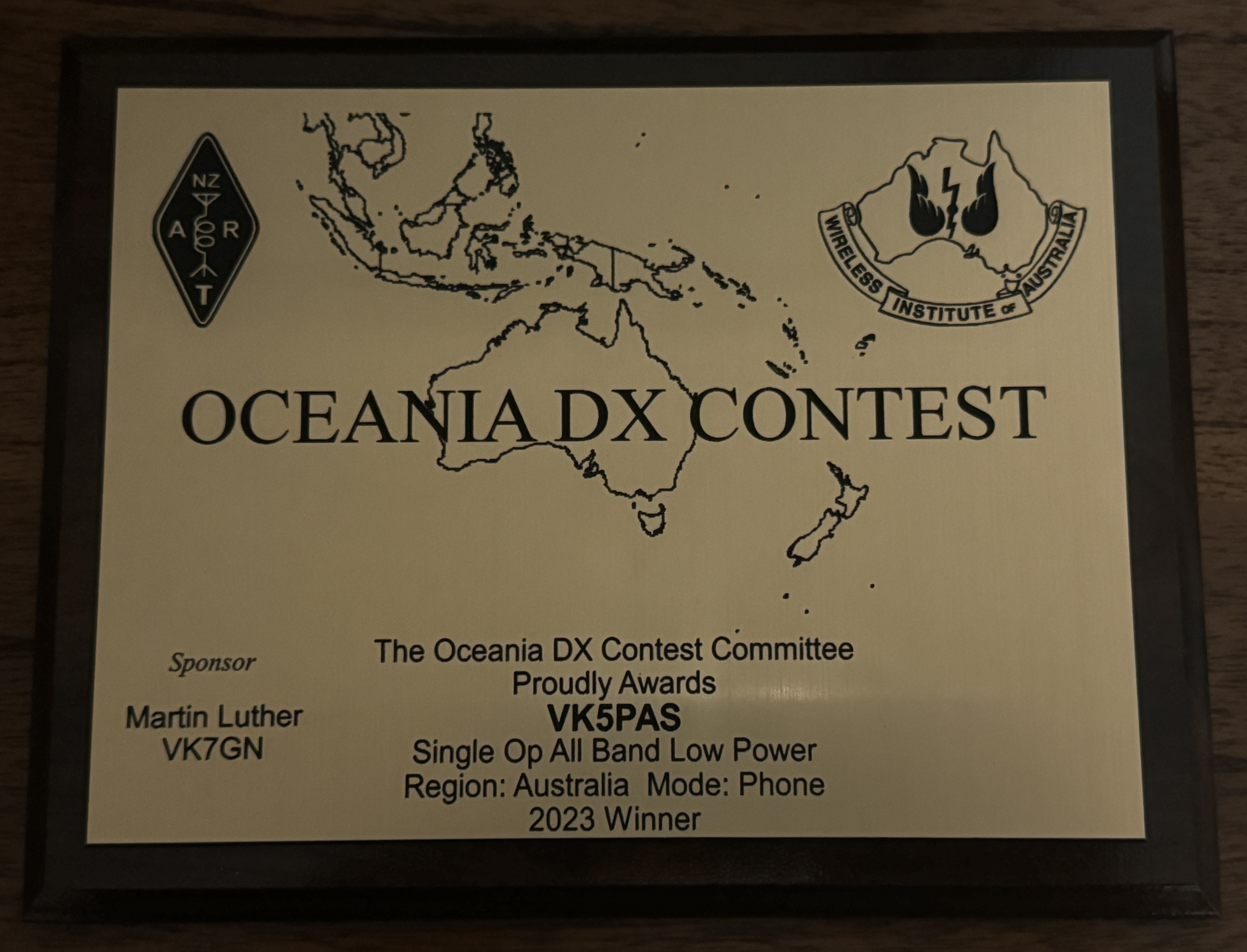 And a big thank you to the Oceania DX Contest Committee and to Martin VK7GN, the sponsor of the plaque.