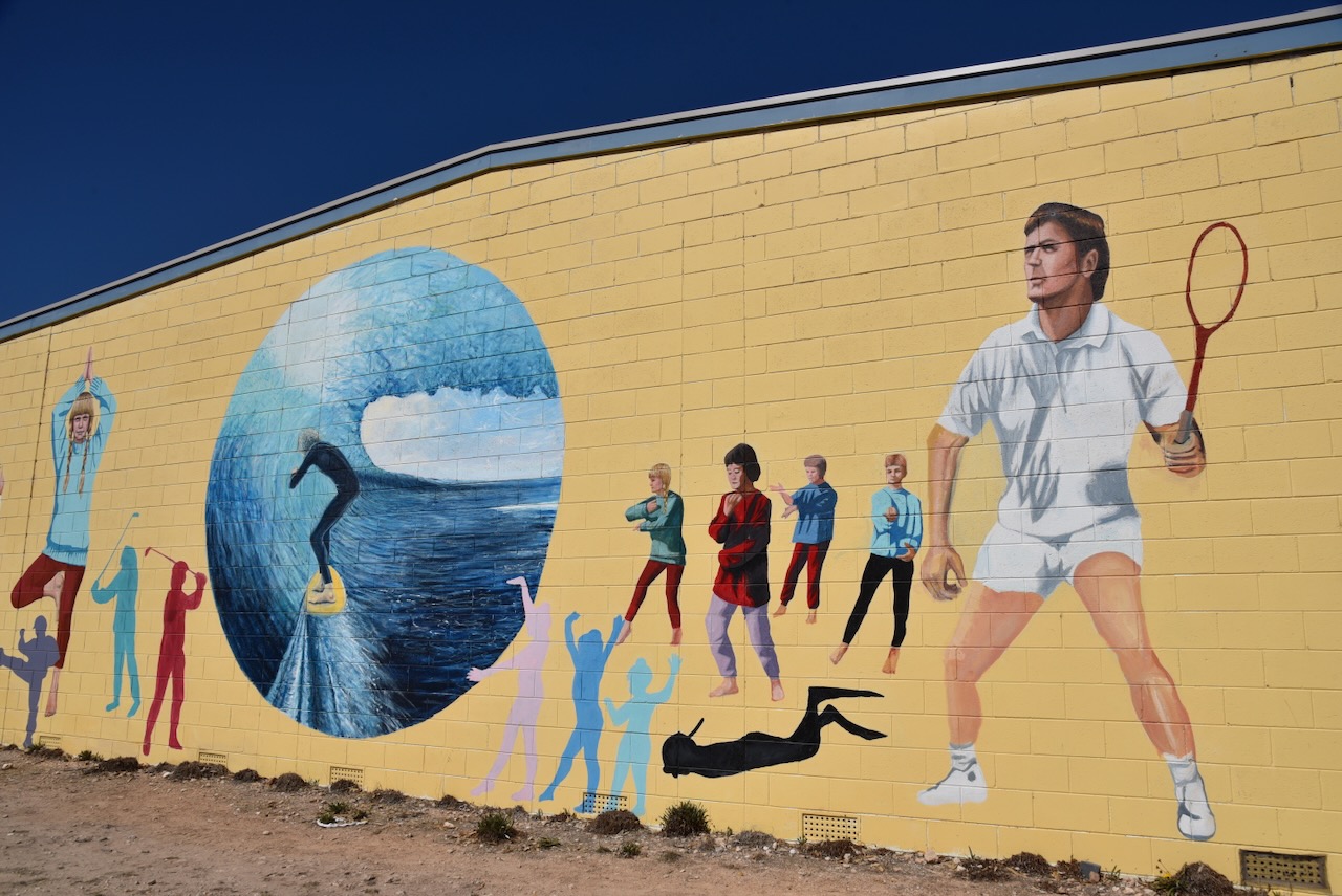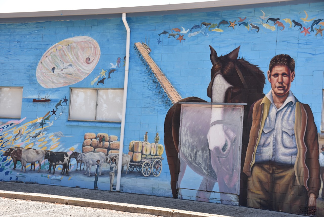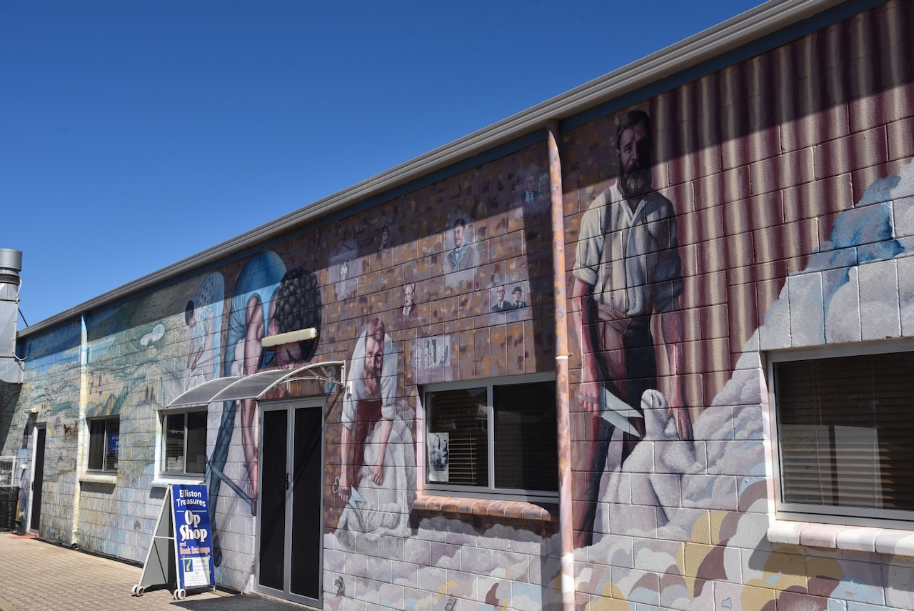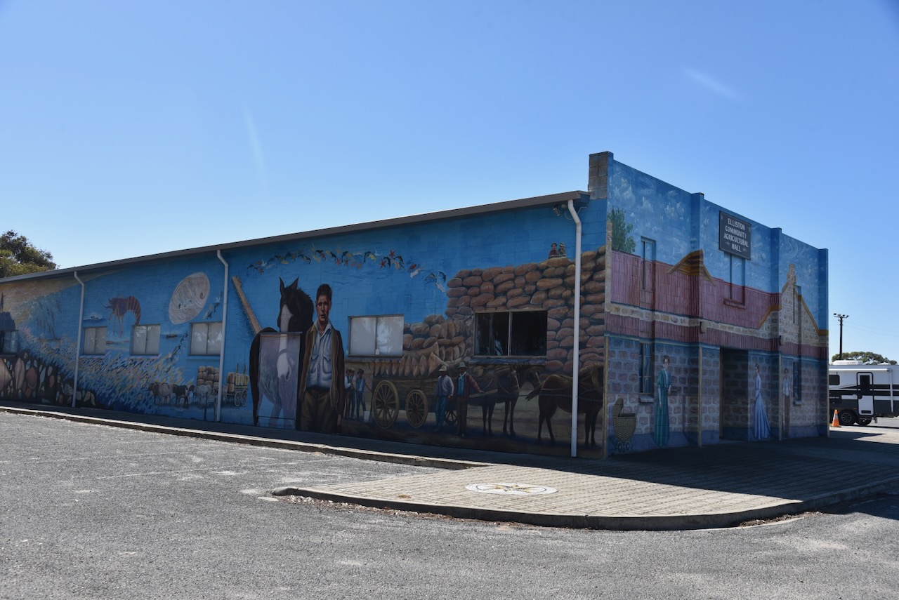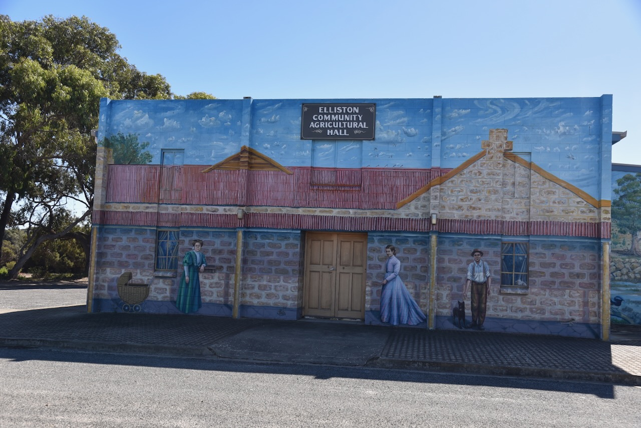 I then drove back into Elliston to view the mural at the Elliston Hall. The mural features various aspects of Elliston including its history and sporting activities.