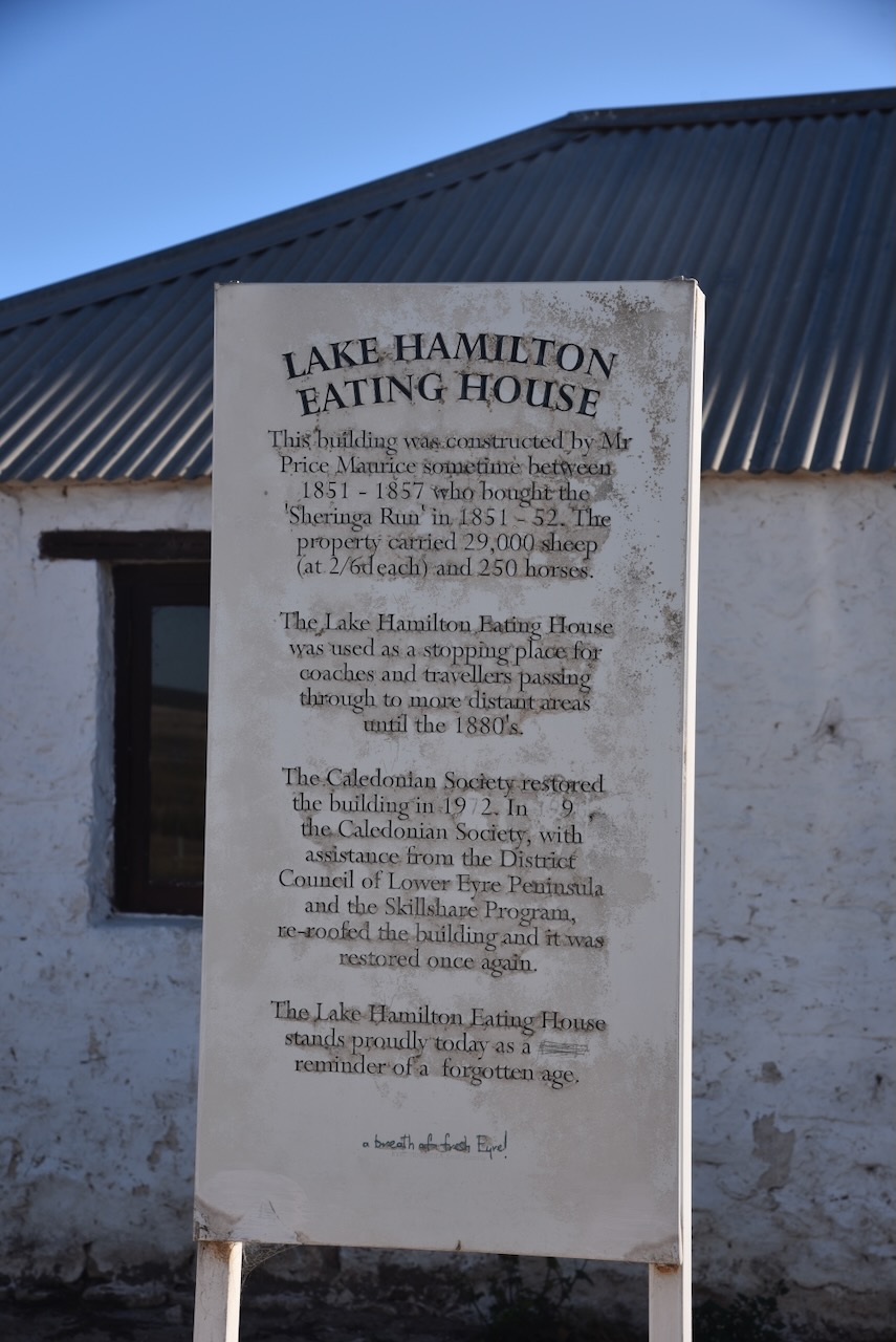 I then visited the Lake Hamilton Eating House on Flinders Highway. The building was constructed between 1851-1857 by Price Maurice who had Sheringa Run. The Eating House was used as a stopping place for coaches and travellers passing through to more distant areas until the 1880s. Granny Rowan was the last person to run the Eating House. She was reputed to brew homemade ale.