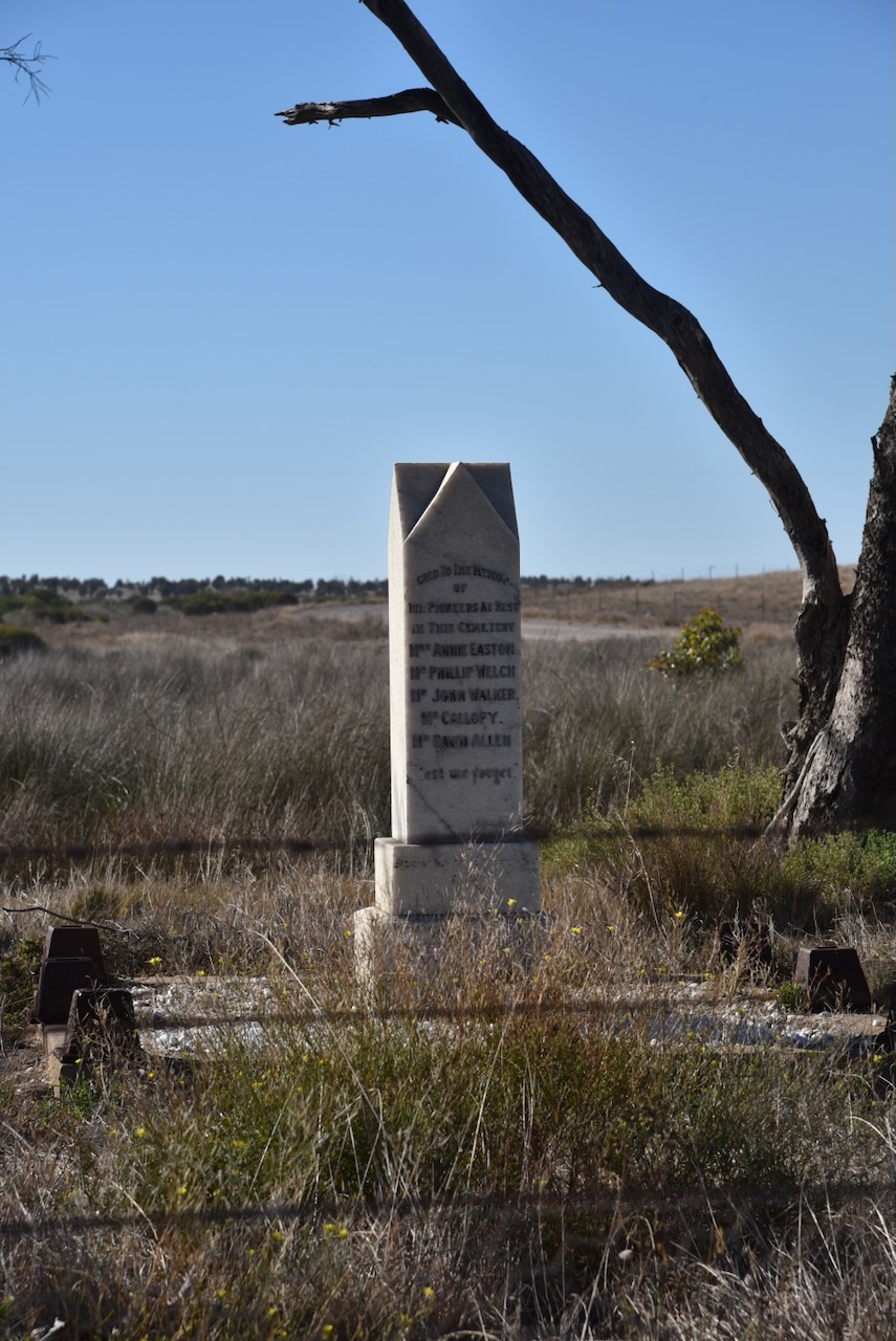 There is a memorial located in the centre of the cemetery and this contains five names. Those names are Mrs Annie Easton, Mr. Phillip Welch, Mr John Walker, Mr. Callopy, and Mr David Allen. (Lake Hamilton Cemetery Survey)