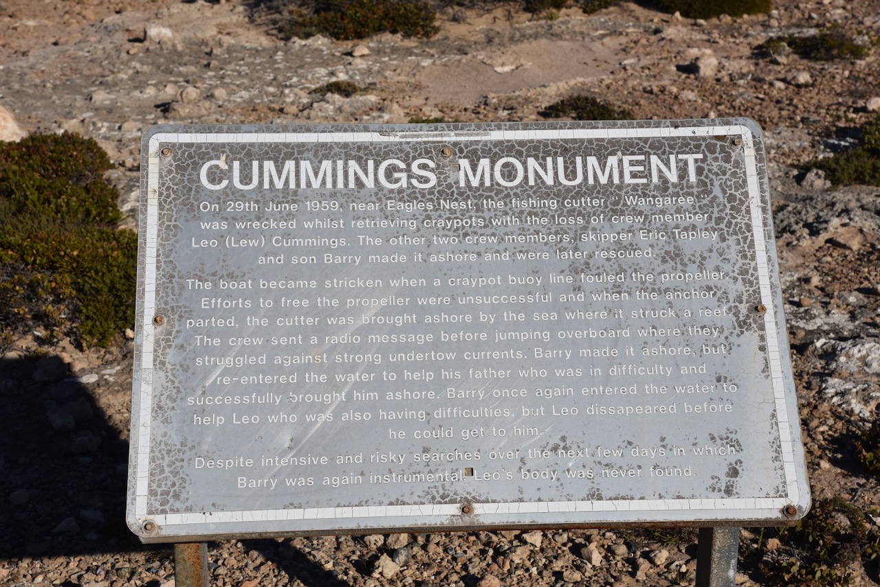 I then stopped at Cummings Lookout. On the 29th day of June 1959, the fishing cutter ‘Wangaree’ was wrecked whilst retrieving craypots with the loss of crew member Leo ‘Lew’ Cummings. The other two crew members, Eric Tapley and son Barry made it ashore and were later rescued.