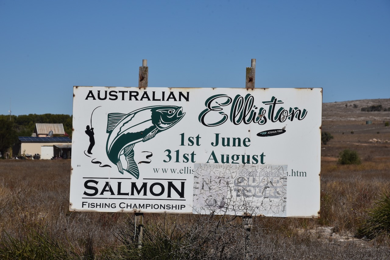 At this intersection is a sign for the Australian Salmon Fishing Championship which is held annually each year from 1st June to 31st August.