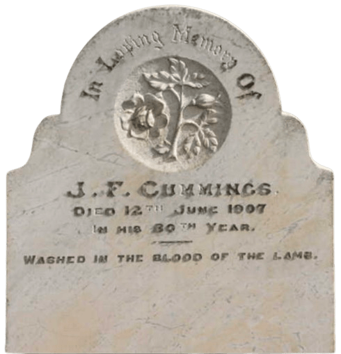 Above:- Headstone of Joseph Francis Cummings (Cummins).