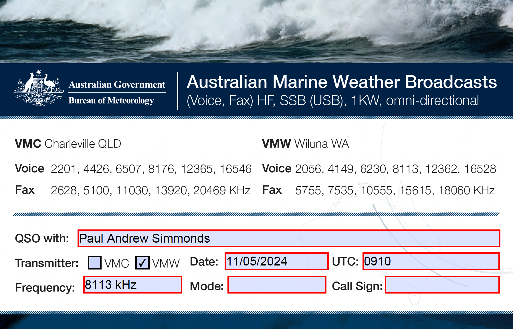 Following this incident, the South Australian Fishermen’s Co-operative Ltd (SAFCOL) made representations to improve ship-to-shore communications for boats operating out of Port Lincoln. Mr Bassham had operated a limited coast radio station at Port Lincoln for several years with the base station VH5BA. The Co-Operative took over the operation of VH5BA from a new site at the SAFCOL Fish Factory which was about 200m above sea level. The VH5BA station at that time comprised a commercial three-band Electrosound receiver, with a locally constructed transmitter that had a 6V6 tube feeding two 807 vacuum tubes. These were modulated by a 6SJ7 tube, 6V6 tube, and a pair of 807’s. The station had an external antenna tuning unit and an Acos type crystal microphone. The output power was about 43 watts. (A History of Radio in South Australia 1978)