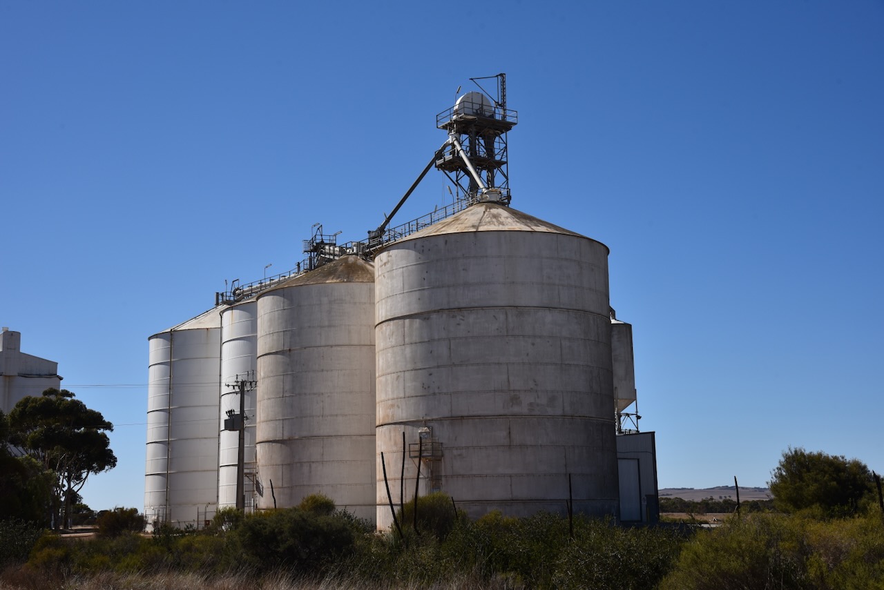 The Edillilie silos are located on the eastern side of Tod Highway opposite Main Street.