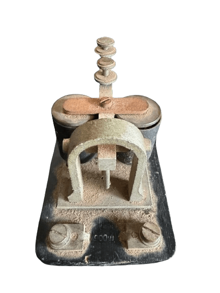 A telegraph sounder is an antique electromechanical device used as a receiver on electrical telegraph lines during the 1800’s. The device was invented by American Alfred Lewis Vail (b. 1807. d. 1859) in c. 1850 to replace the previous receiving device known as the Morse register. (Wikipedia 2024)