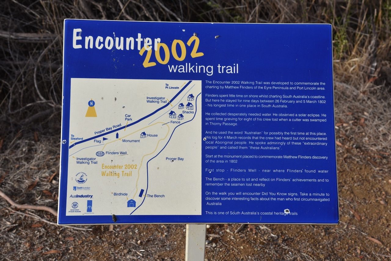 This area is part of the Encounter 2002 Walking Trail. The trail was developed to commemorate the charting of the Eyre Peninsula and Port Lincoln area by Matthew Flinders.