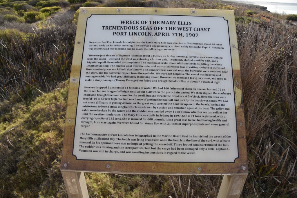 I stopped at the carpark at Lolo Beach where you can find an information board regarding the wreck of the Mary Ellis.