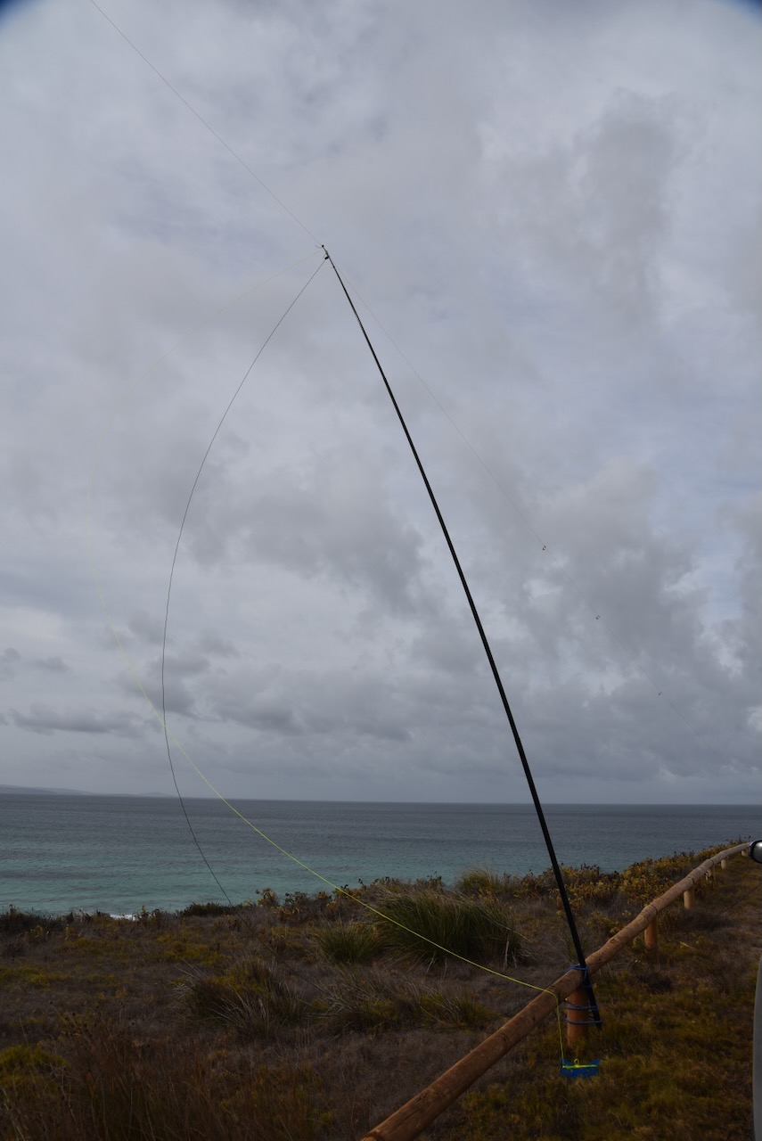 I took a 4WD track off Proper Bay Road and set up my station. The weather had rolled in and it was extremely windy. I was very surprised during the activation that the squid pole did not snap. I ran the Yaesu FT857, 40 watts, and the 20/40/80m linked dipole.