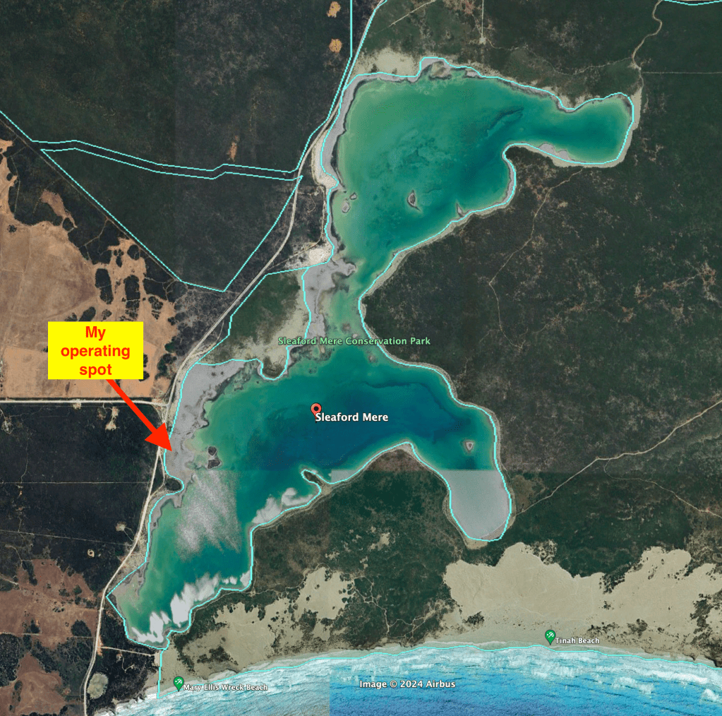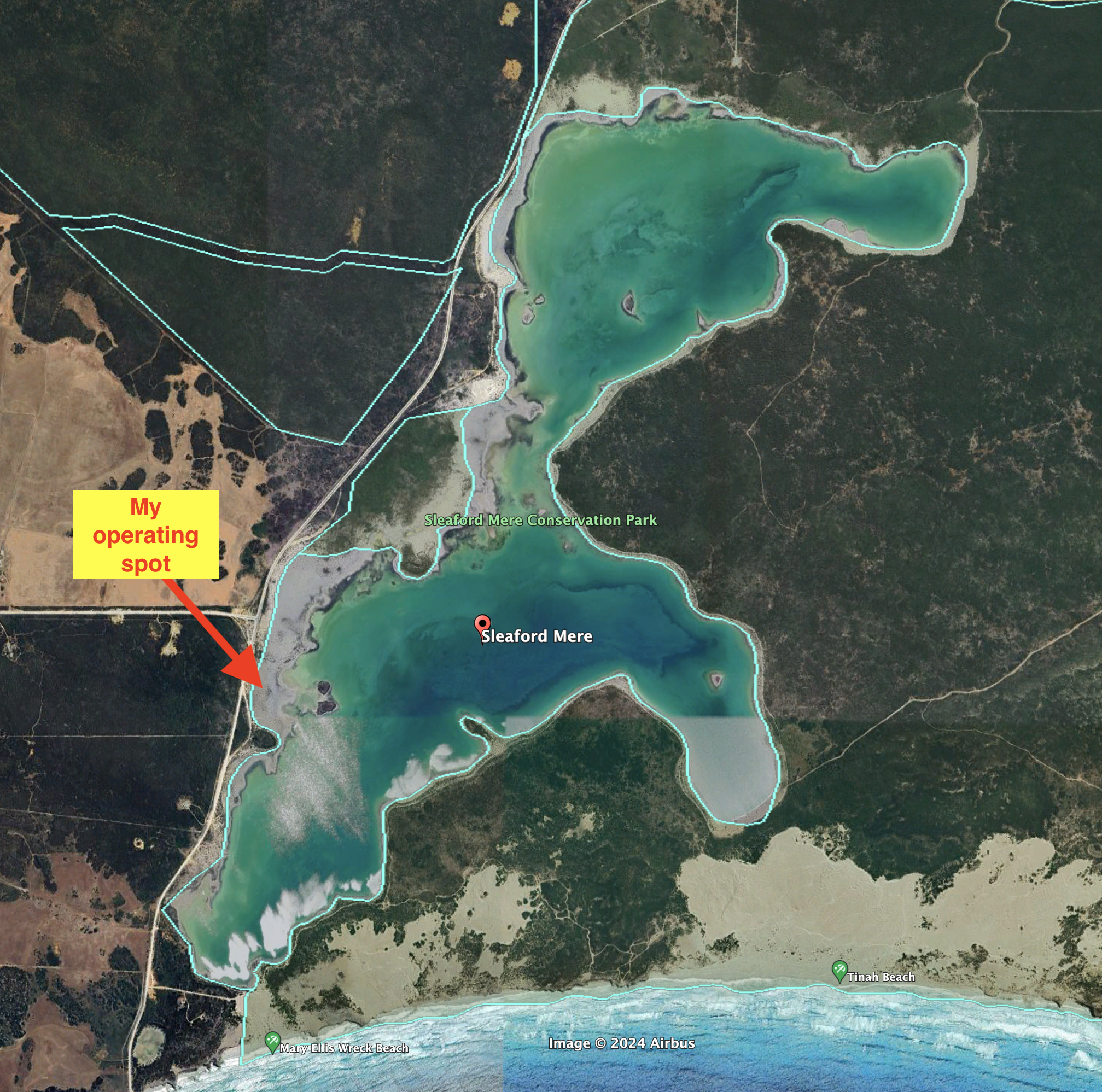 My second activation for Tuesday 23rd April 2024 as the Sleaford Mere Conservation Park VKFF-1102. The park is located on the Eyre Peninsula about 669 km (by road) from the city of Adelaide.