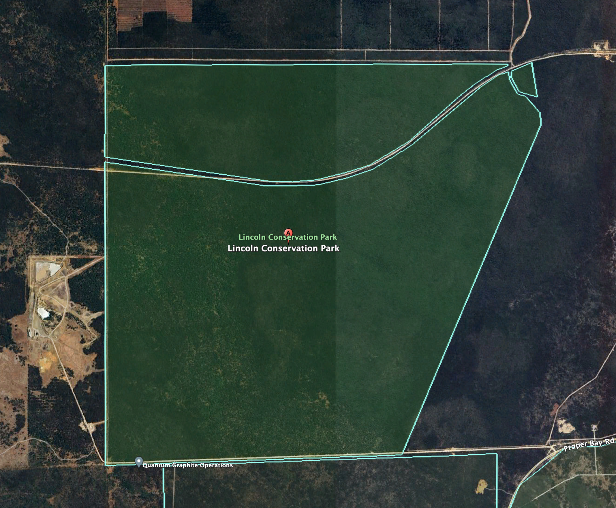 The Lincoln Conservation Park is about 255 acres in size. It is divided into three sections, with the park being split by Tramline Track. (Wikipedia 2024)