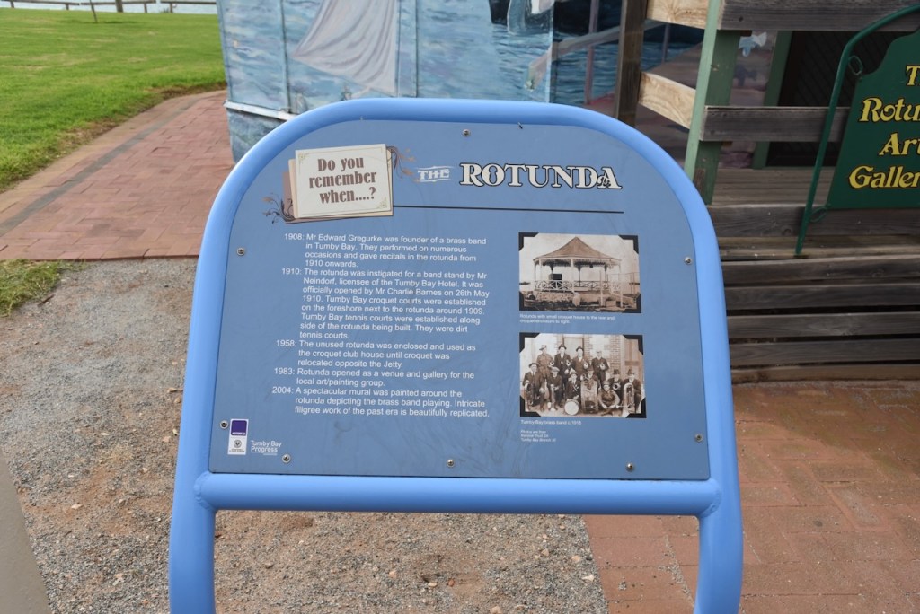 A Brass Band was formed at Tumby Bay in 1908 by Edward Gregurke. By 1910 a band rotunda had been built by the Tumby Bay Hotel publican. In 1983 it was turned into an art gallery. In 2004 a mural was painted on the outside walls. (Aussie Towns 2024)