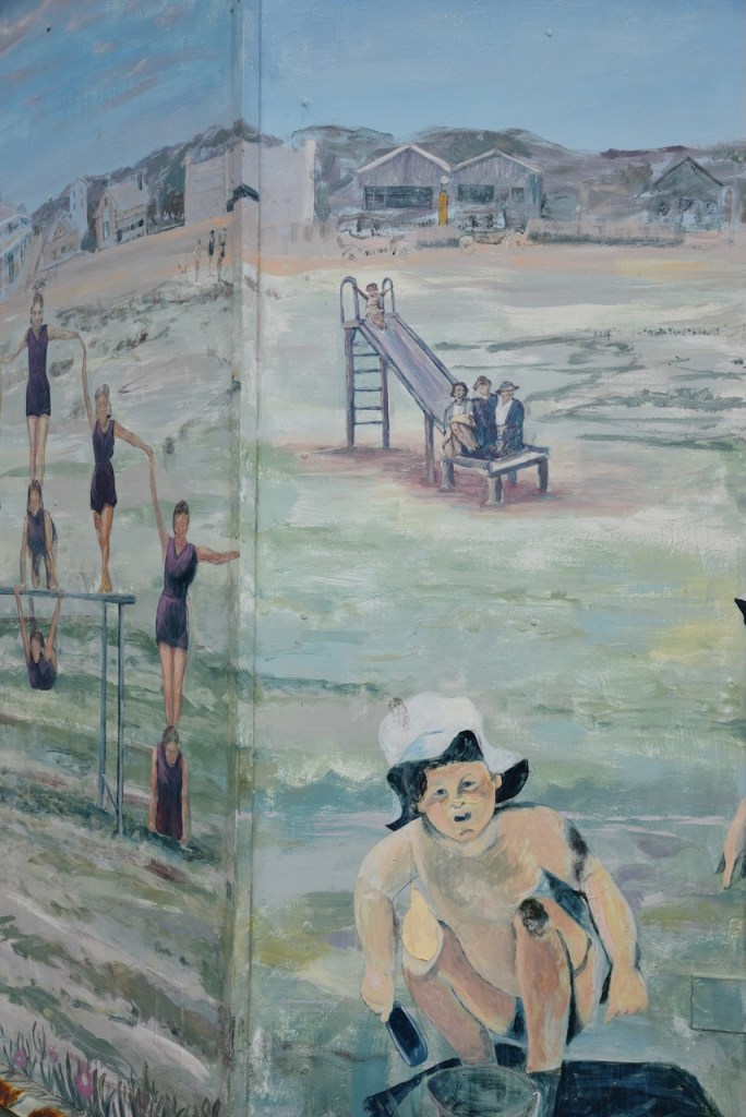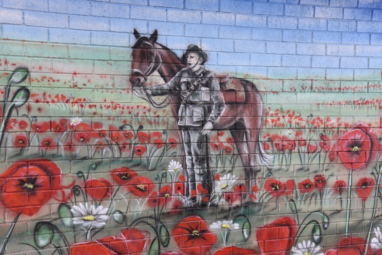 On a building on the foreshore, you can find a magnificent mural to honour servicemen and servicewomen. It is the work of artist Simon White and depicts the red poppies of Flanders Fields battlegrounds in the First World War. (ABC 2024)