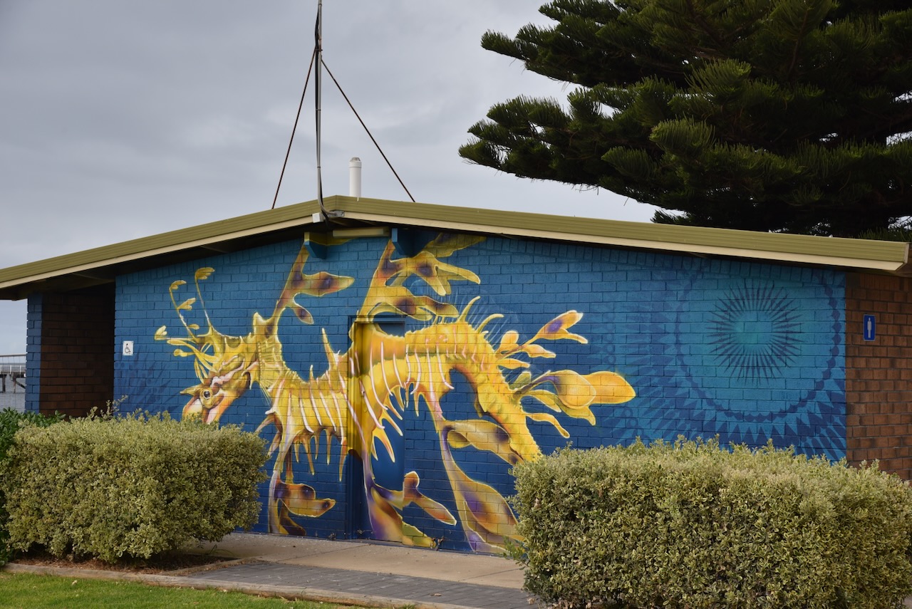 Another mural to be found is that of the Leafy Sea-dragon. It was painted by Masher Designs in 2023. (ABC 2024)