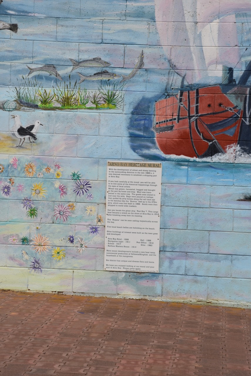 One of the must-sees in the town is the Arno Bay Heritage Mural, painted on the side of a building.