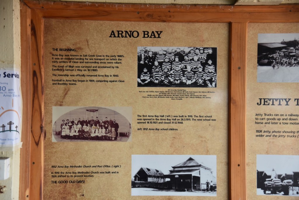 It was expected that the town would become a port, and as a result, a jetty was constructed in 1880. Although not large, the port of Arno Bay imported fertilisers and exported cereal crops grown in the district. By 1911 the town had a school, post office, hotel and a hall. (Wikipedia 2024)