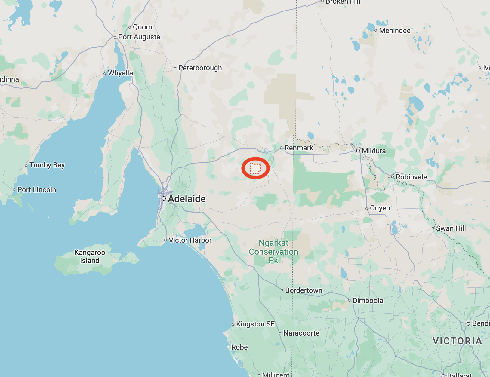 Above: The map shows the location of Wunkar, South Australia. Map c/o Google Maps.