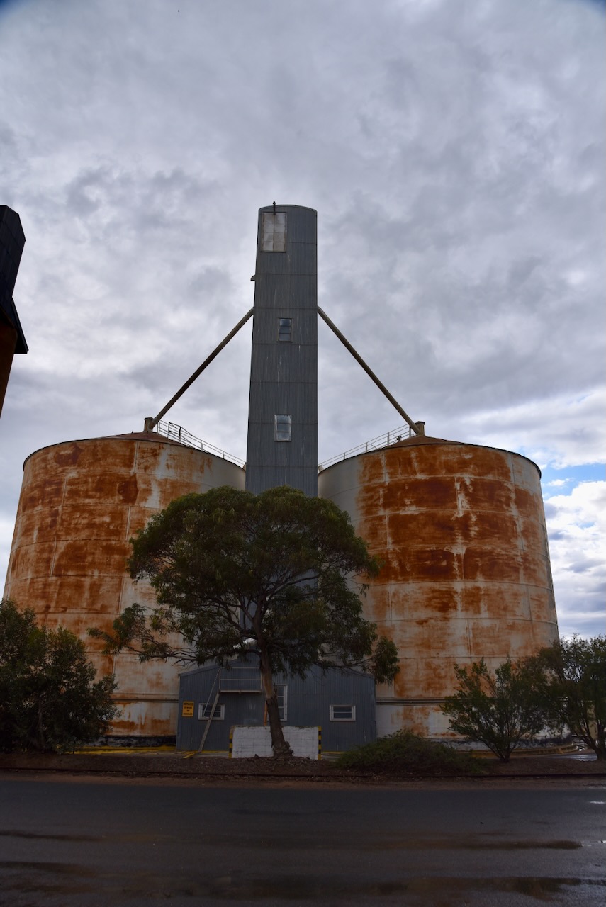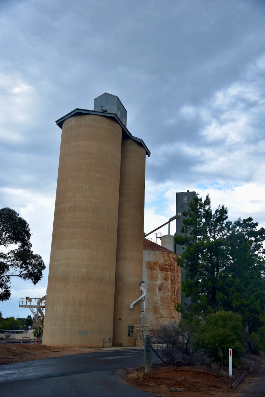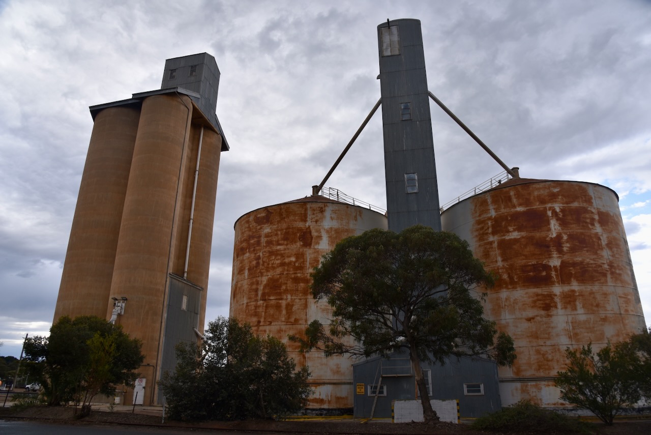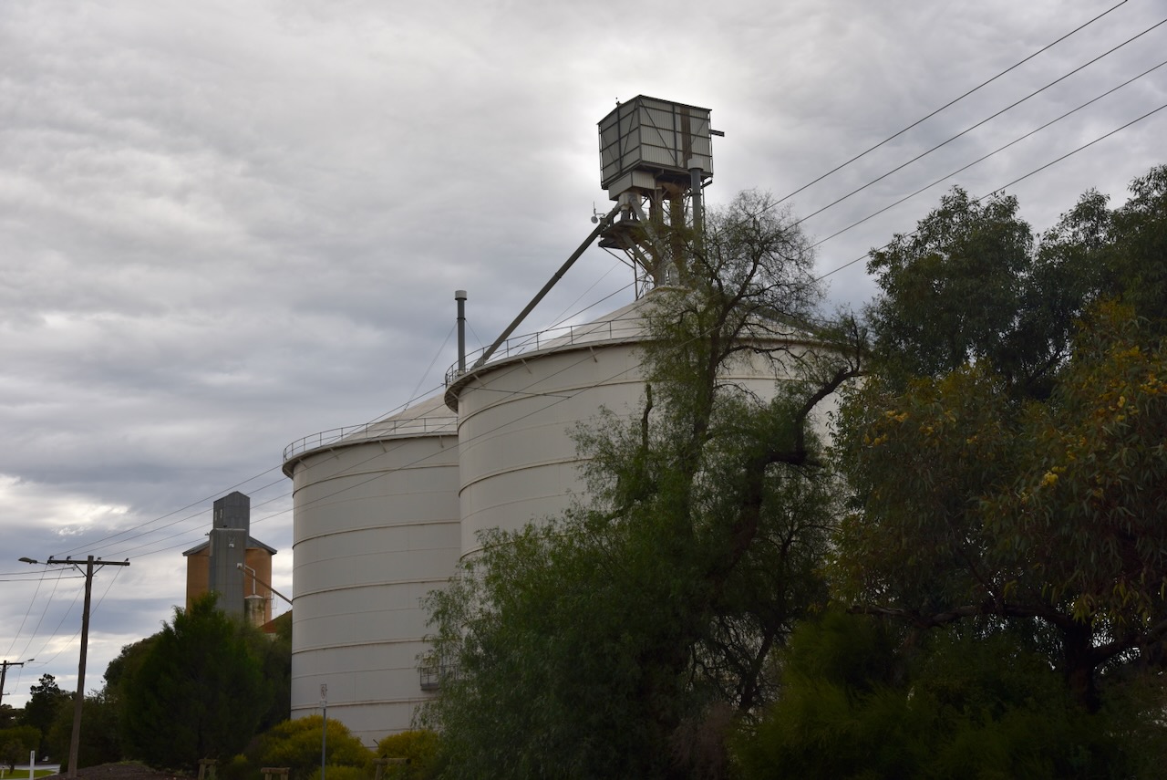 The Ouyen silos are located on Rowe Street. There are two steel silos a few hundred metres apart from the concrete silos and the older steel silos.