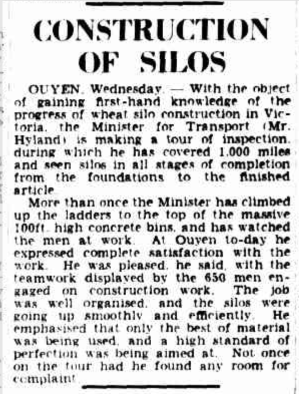 The concrete silos at Ouyen were constructed in 1939. (The Argus)