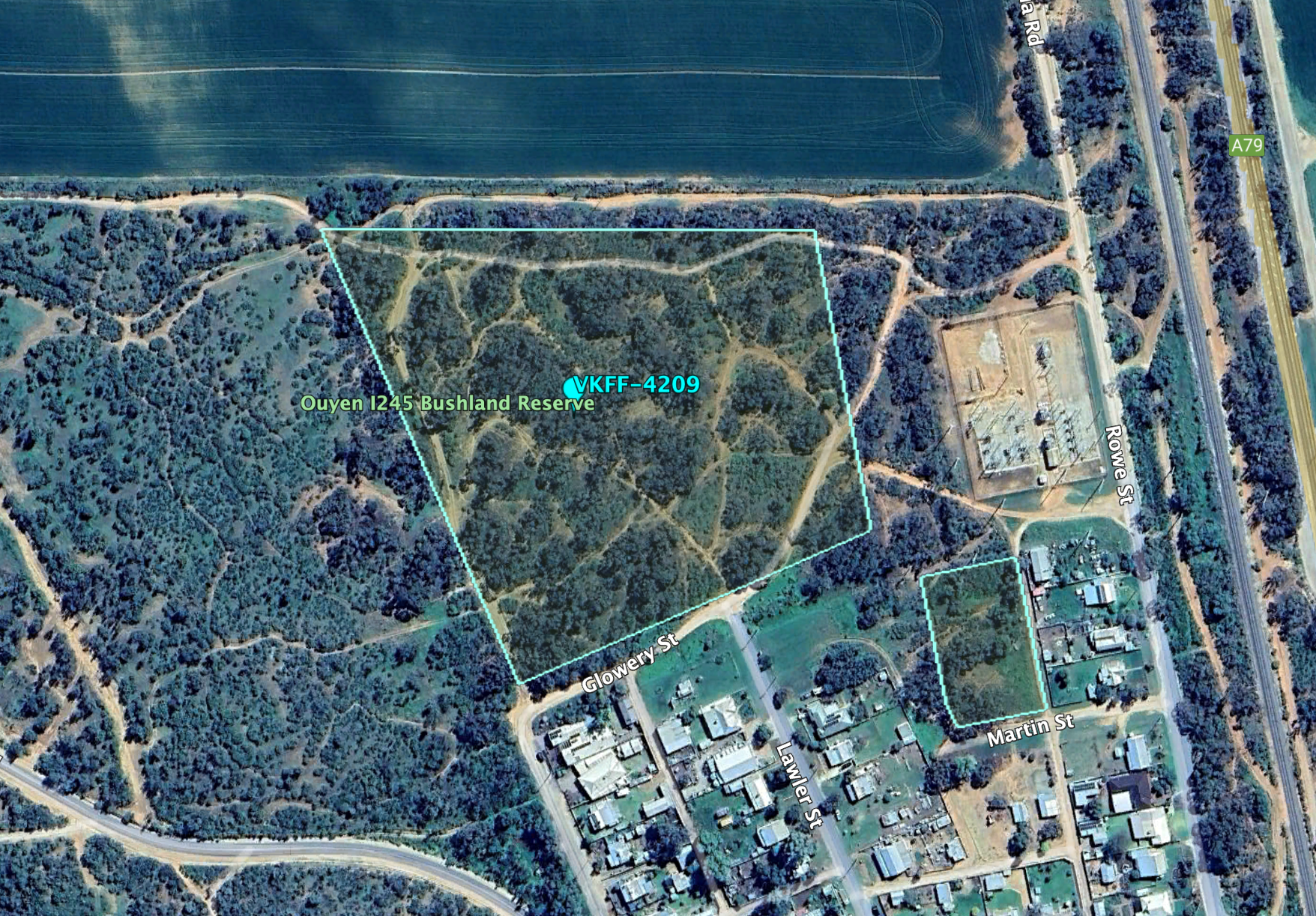 Above:- An aerial view of the Ouyen I245 Bushland Reserve. Image c/o Google Earth.
