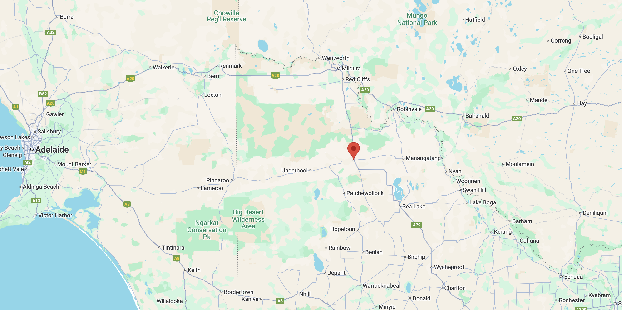 Above:- Map showing the location of the Ouyen I245 Bushland Reserve. Map c/o Google Maps.
