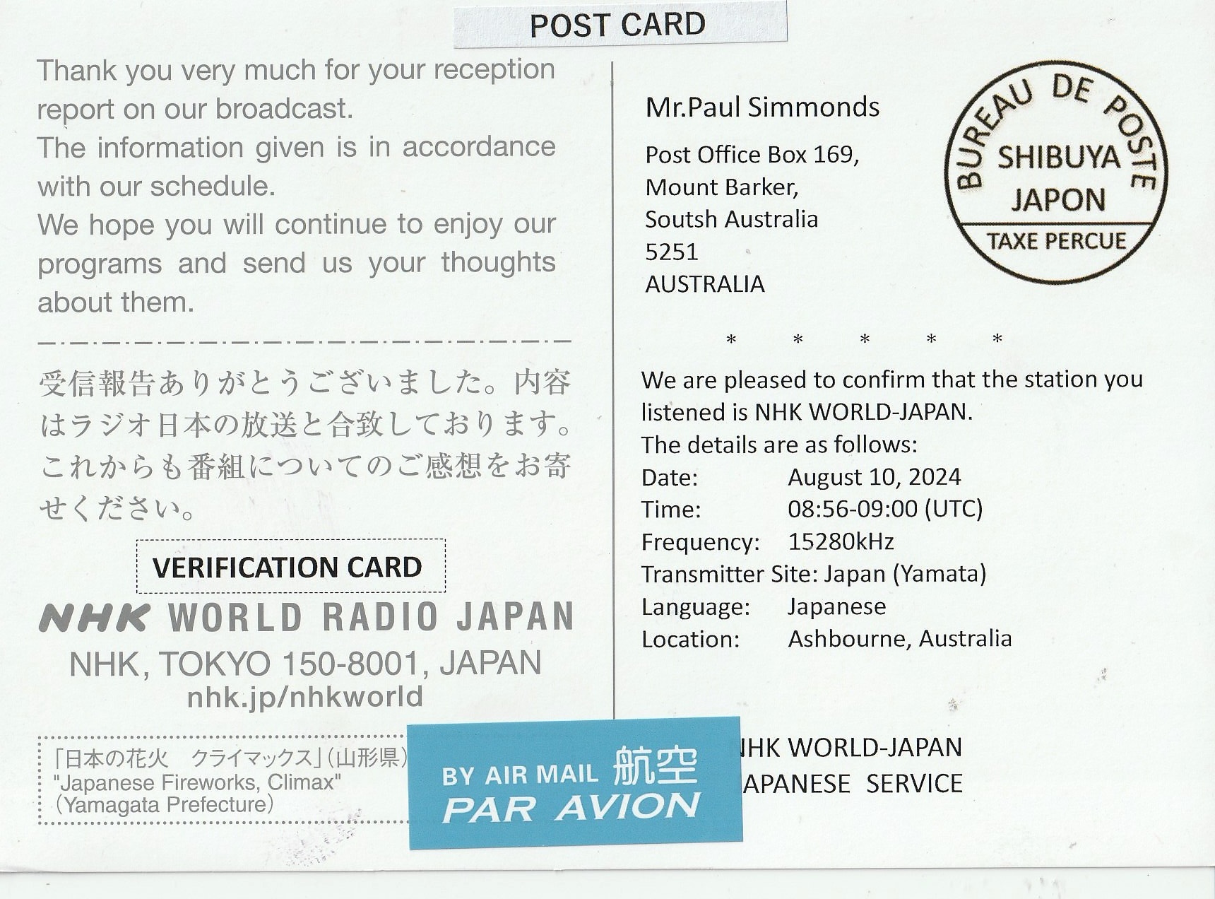 Received in the mail in the past couple of days was this QSL card from WRNO, USA for my reception of their station on 7505 kHz on 14th August 2024.