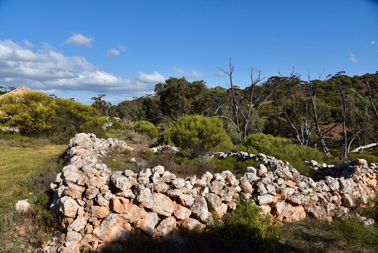 The reserve contains a c. 1900 pug and pine and stone cottage. The rooms are constructed of a mixture of clay, cut straw, fresh manure and water that are packed between the native cypress pine posts. In 2001 volunteers commenced work on establishing and renovating the cottage ruin. (National Trust 2010)
