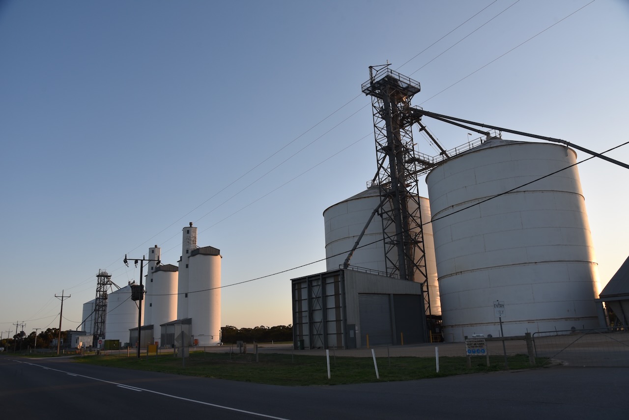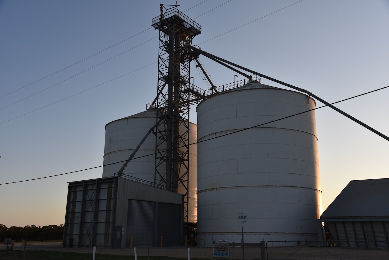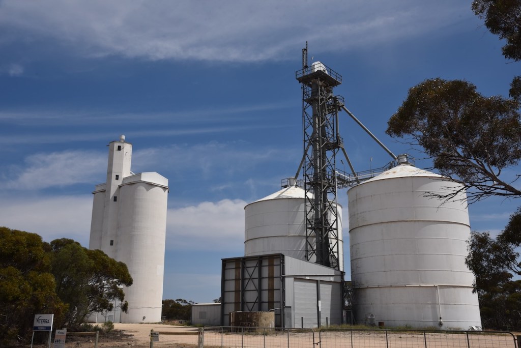 The silos at Peebinga were erected in 1964 and are still used by Viterra. Rail services ceased from the Peebinga silos in 1990. (Flickr 2024)