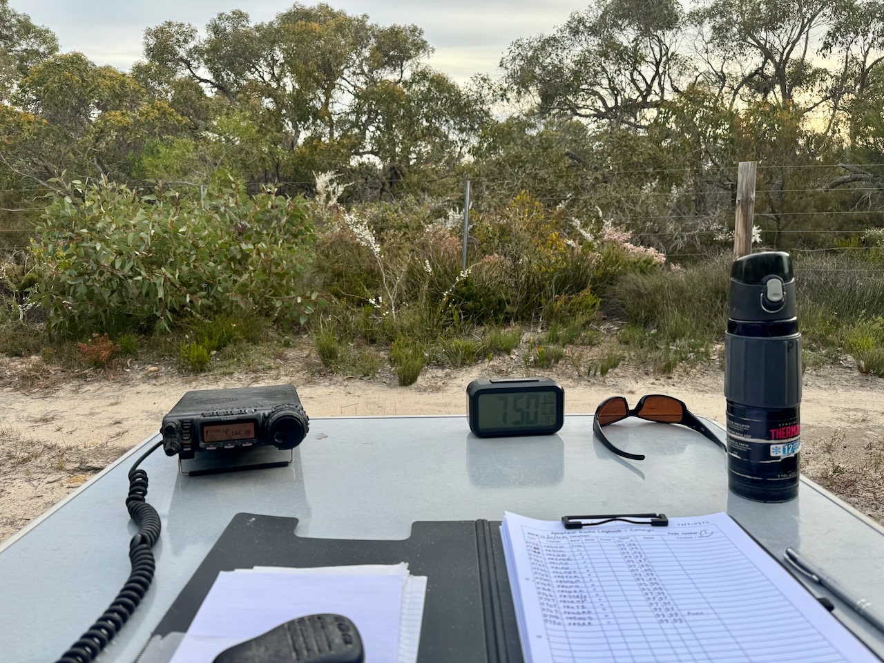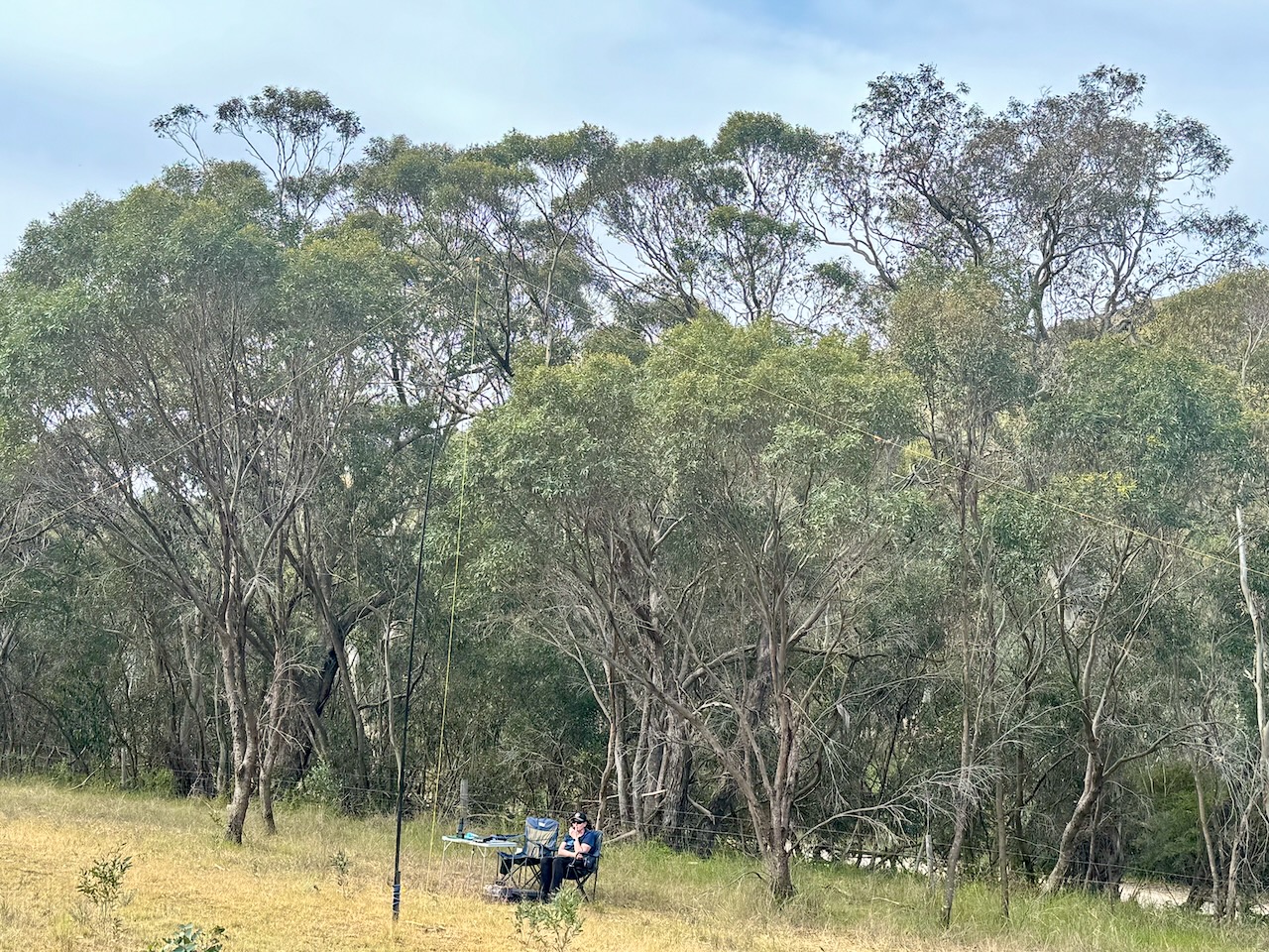 We set up in a clearing amongst the scrub and ran the Yaesu FT857, 40 watts, and the 20/40/80m linked dipole.