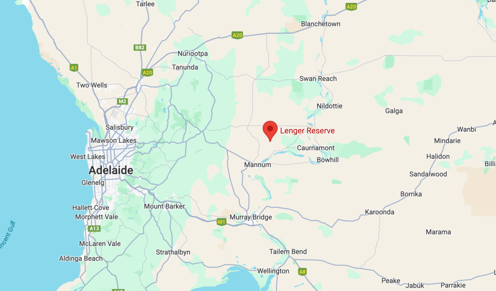 Lenger Reserve is located at 884 Springs Road, Mannum. It is owned by the National Trust of SOuth Australia. The reserve is about 95 hectares and contains steep limestone/calcrete hills that follow Saunders Creek. The creek has cut a narrow valley through the plain. There are several permanent spring-fed waterholes. The reserve also contains majestic River Red Gums. (National Trust 2024)