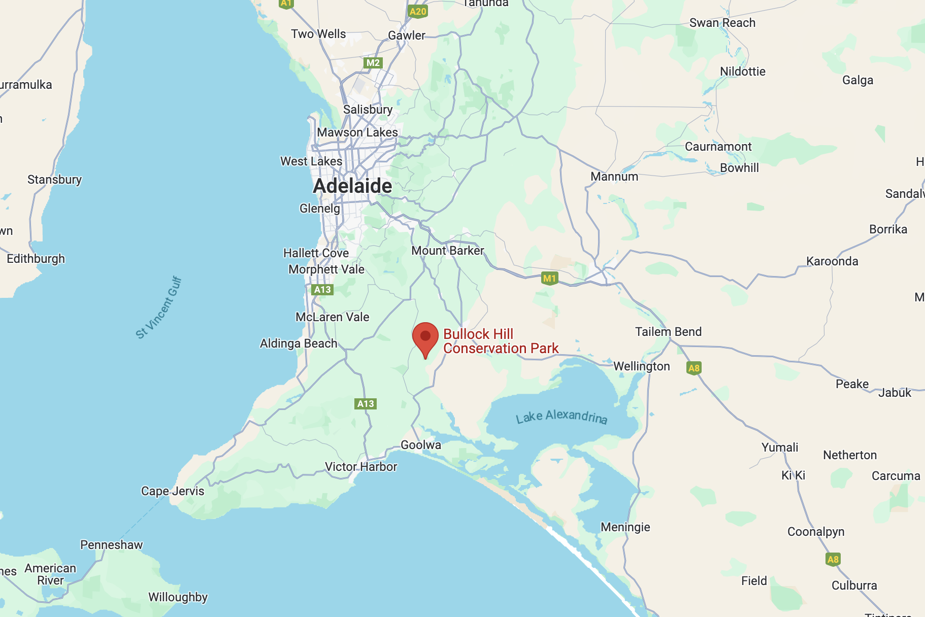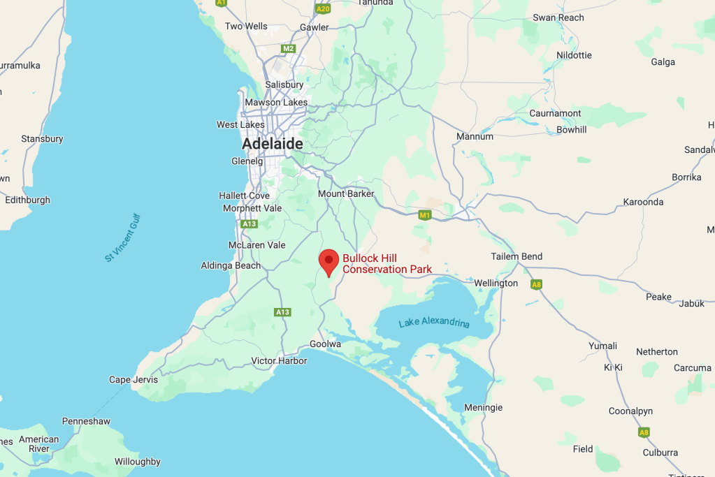 Above:- Map showing the location of the Bullock Hill Conservation Park. Map c/o Google Maps.