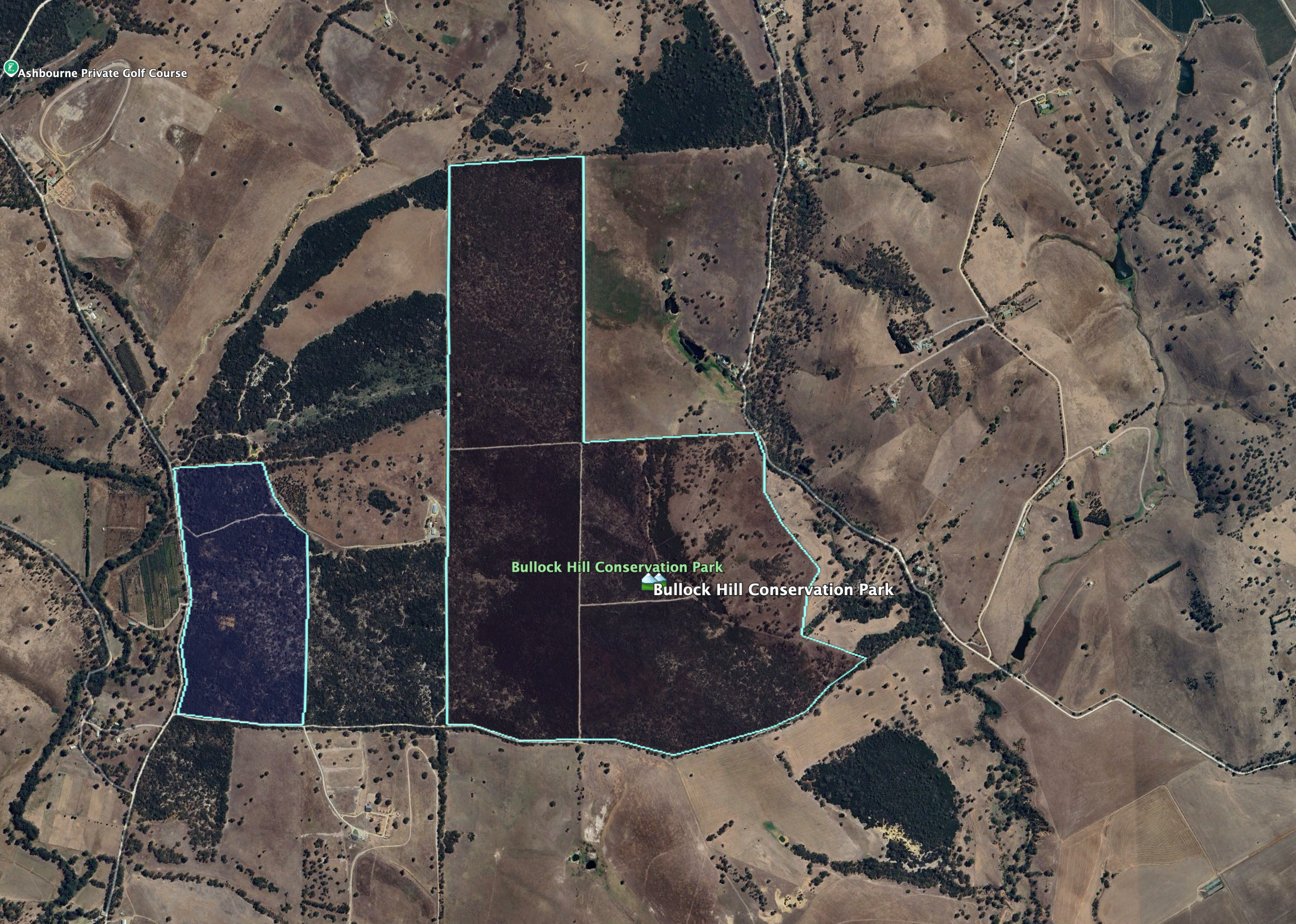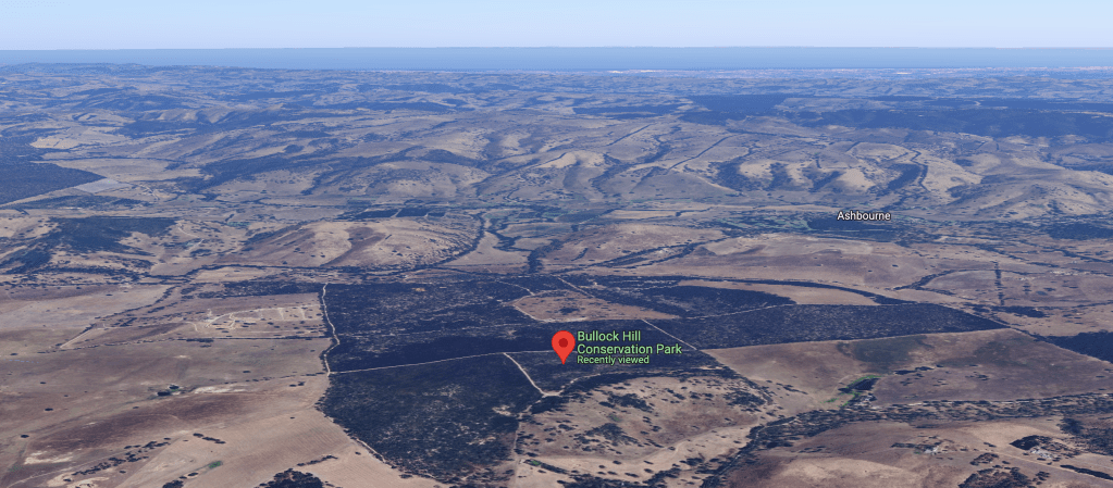 Above:- An aerial view of the Bullock Hill Conservation Park. Image c/o Google Earth.