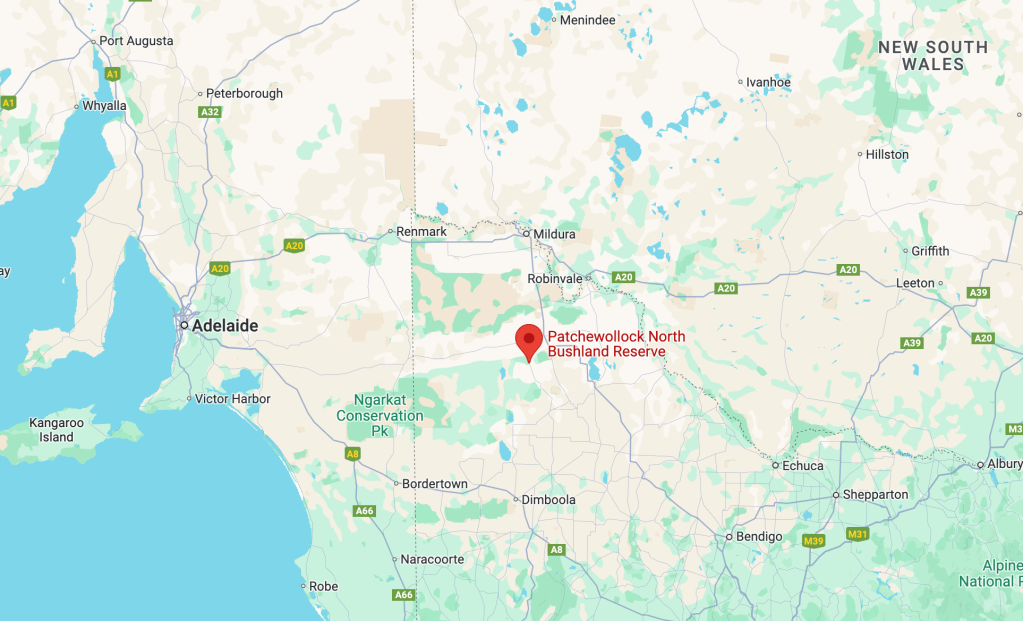 Above:- Map showing the location of the Ptachewollock North Bushland Reserve. Map c/o Google Maps.