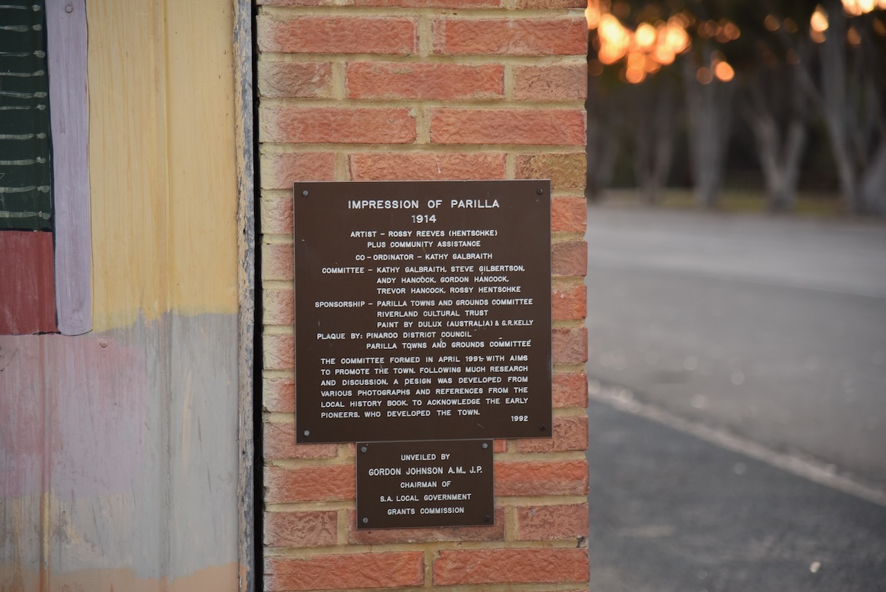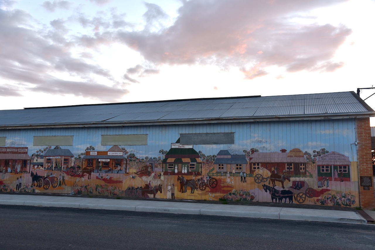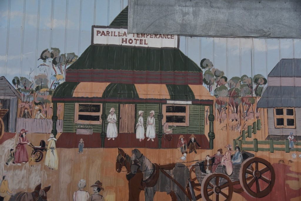Parilla is believed to be an aboriginal word meaning ‘cold place’. The township of Parilla was proclaimed on the 4th day of January 1894. There is a magnificent mural in Parila entitled “Impression of Parilla 1914” acknowledges the early pioneers who established the town. The images appearing on the mural were designed from various photographs in a local history book. (Monument Australia 2024)